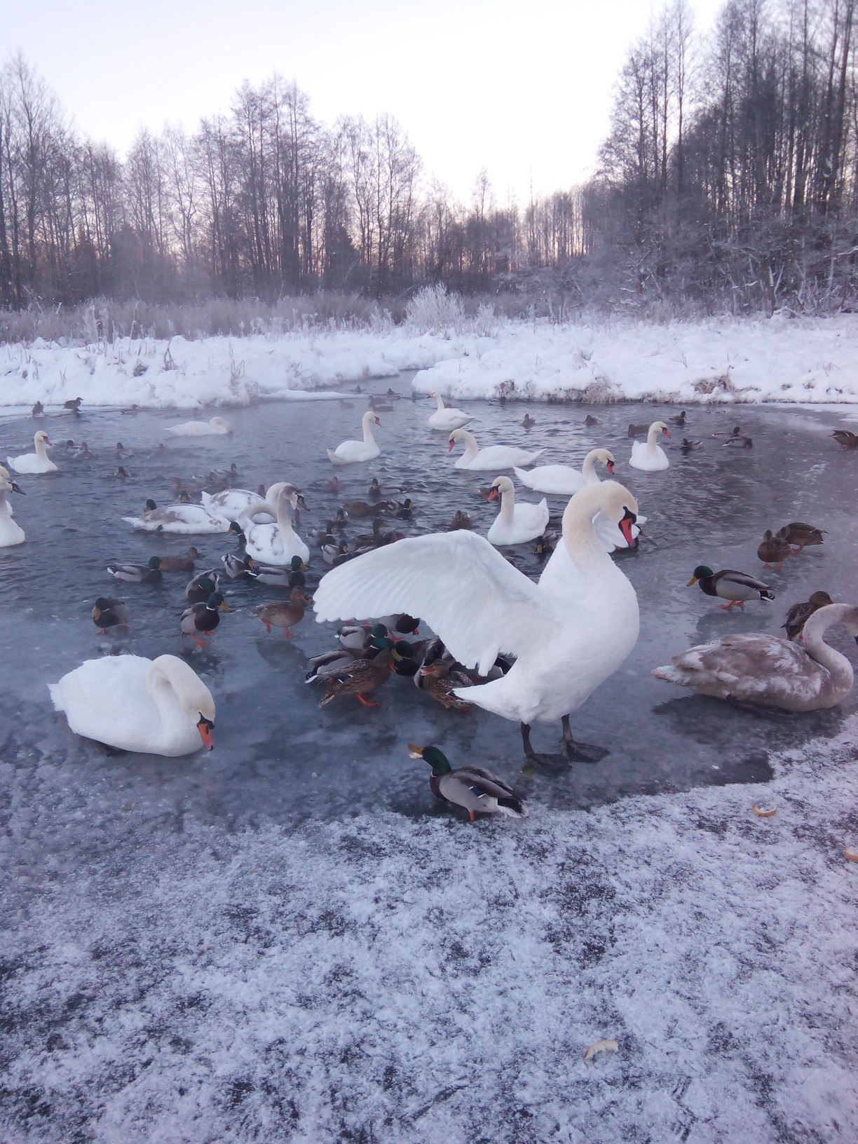 La familia de cisnes shipunov hizo una parada en el largo camino