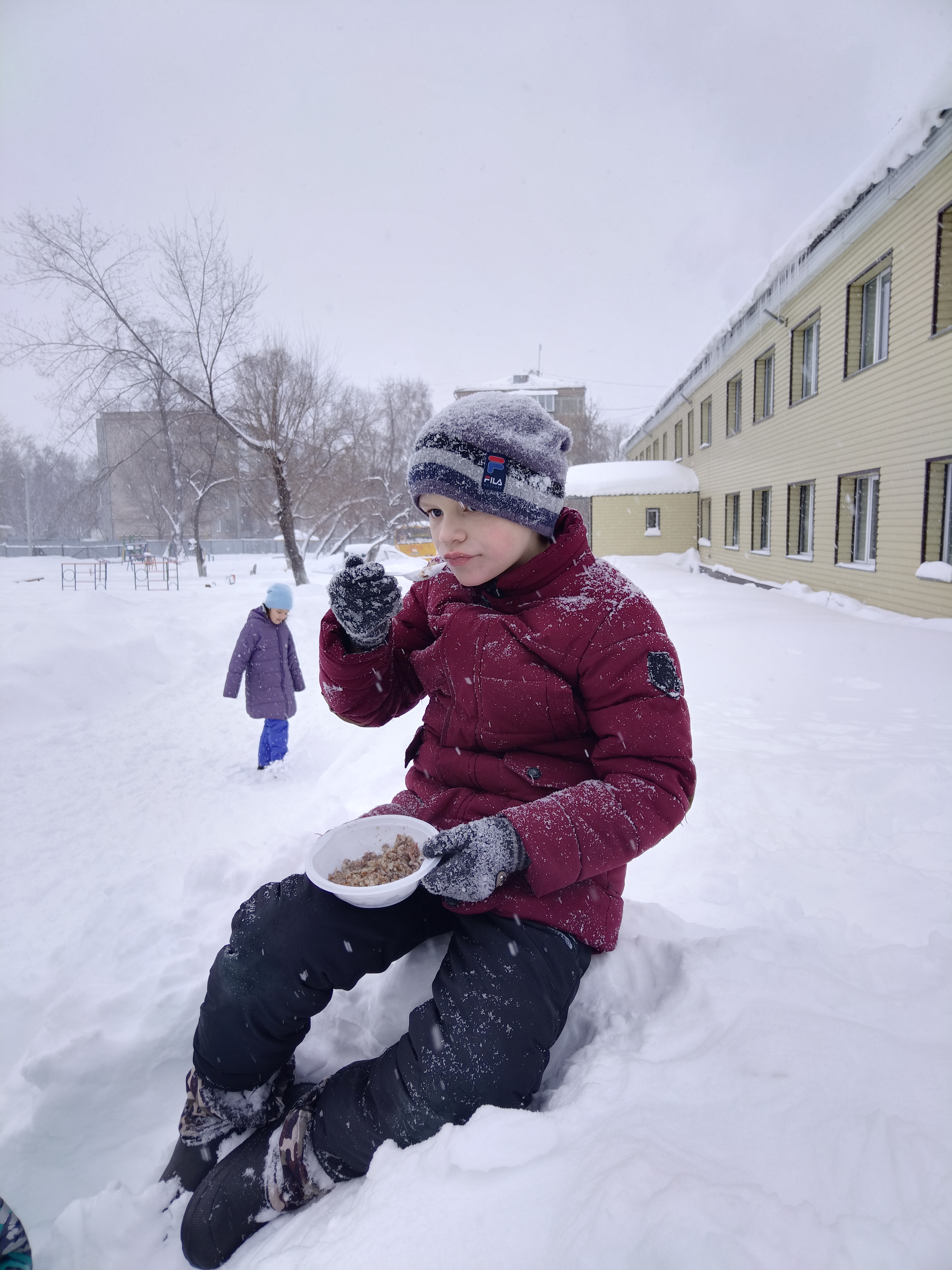 Gachas de soldado. Desayuno en la nieve.