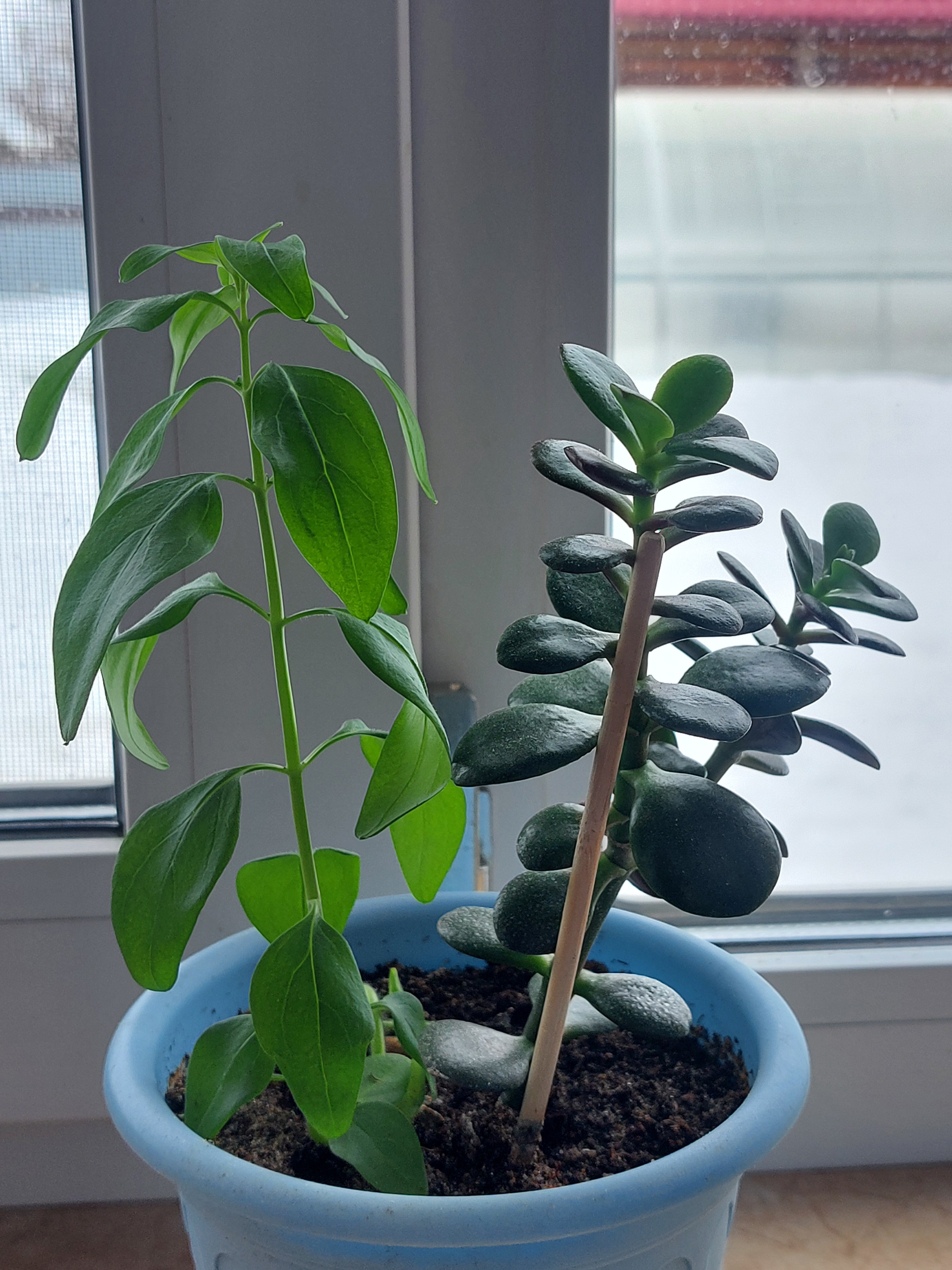 Boca de León creció en una olla a sí mismo. La tierra durante el trasplante de la mujer gorda fue tomada del macizo de flores.