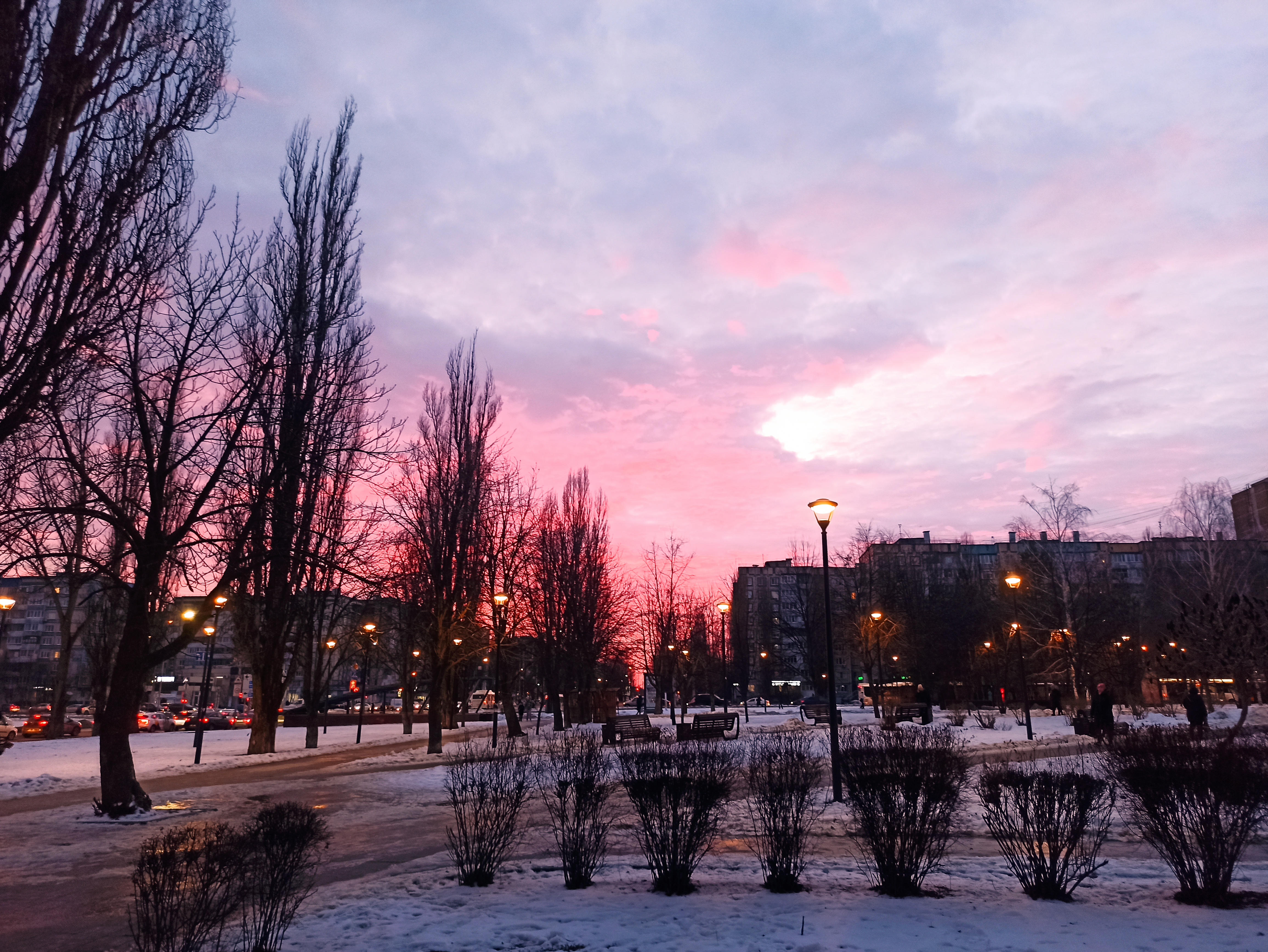 Puesta de sol escarlata en la ciudad Blanca
