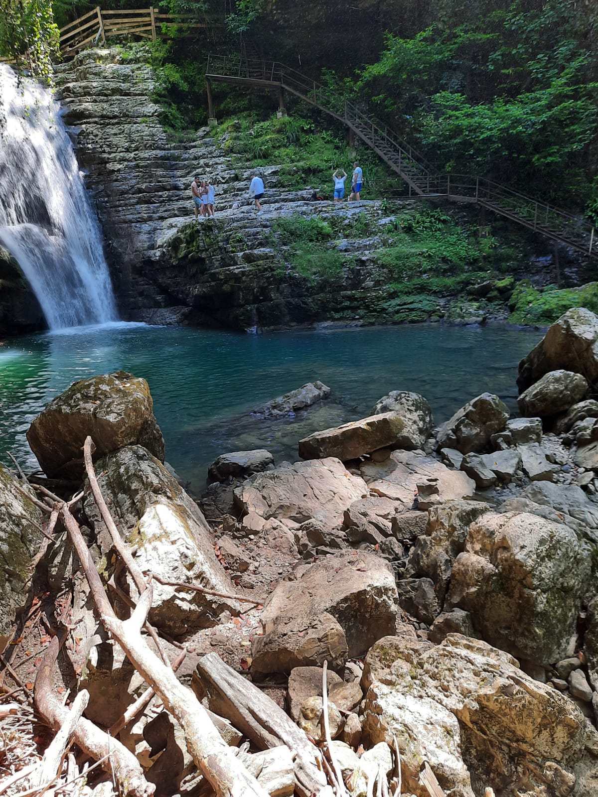 En la cascada-fresco de verano