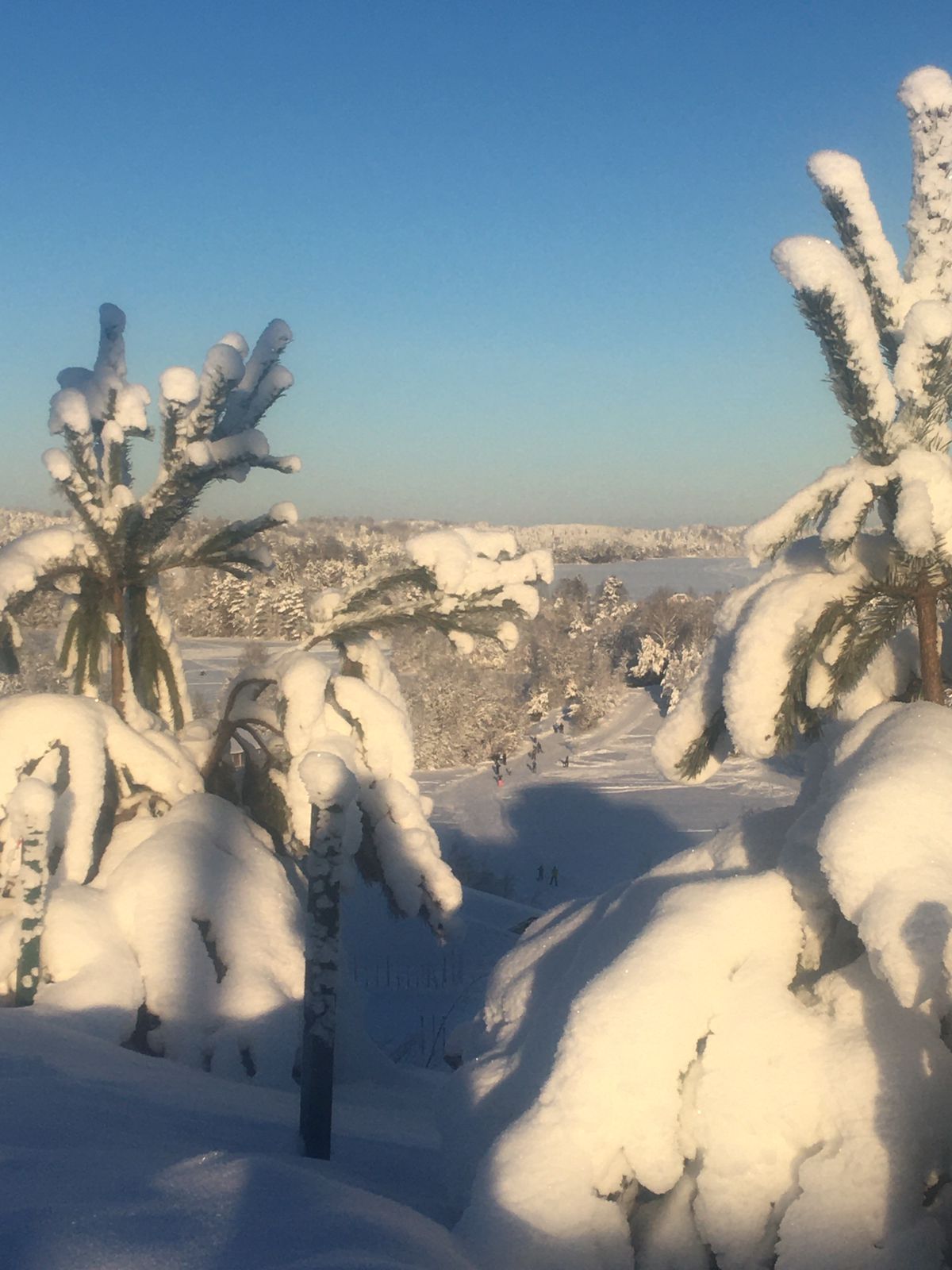 Árboles de Navidad-palmeras en la mañana de invierno