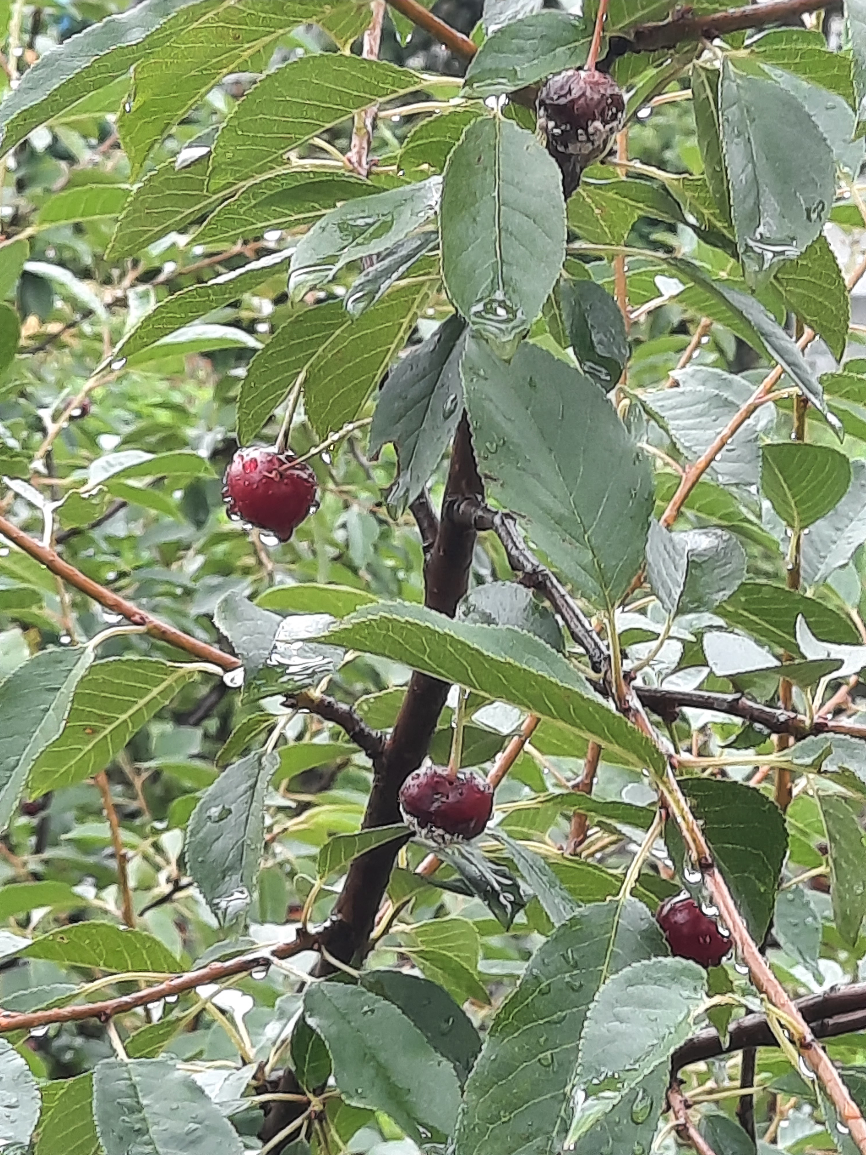 Las cerezas se refrescan con la lluvia