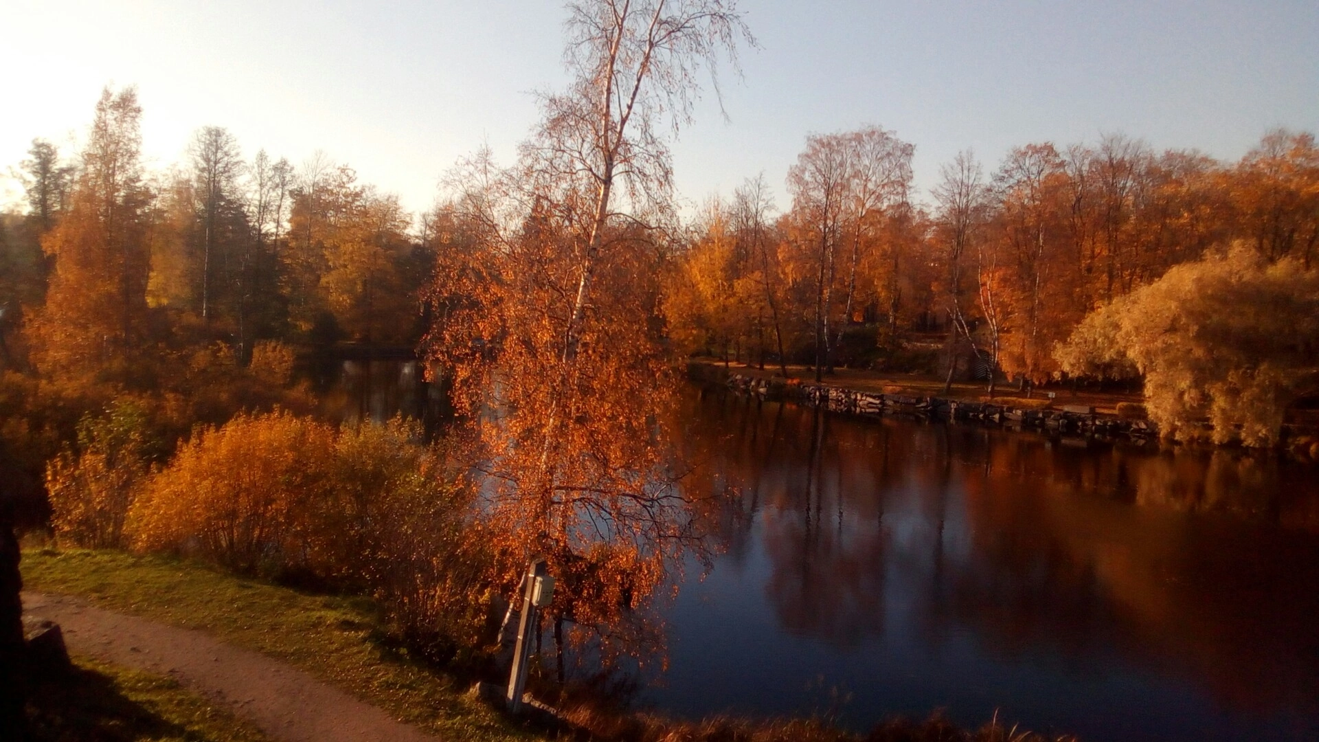 Otoño naranja. Priozersk Cerca de la fortaleza de corela.