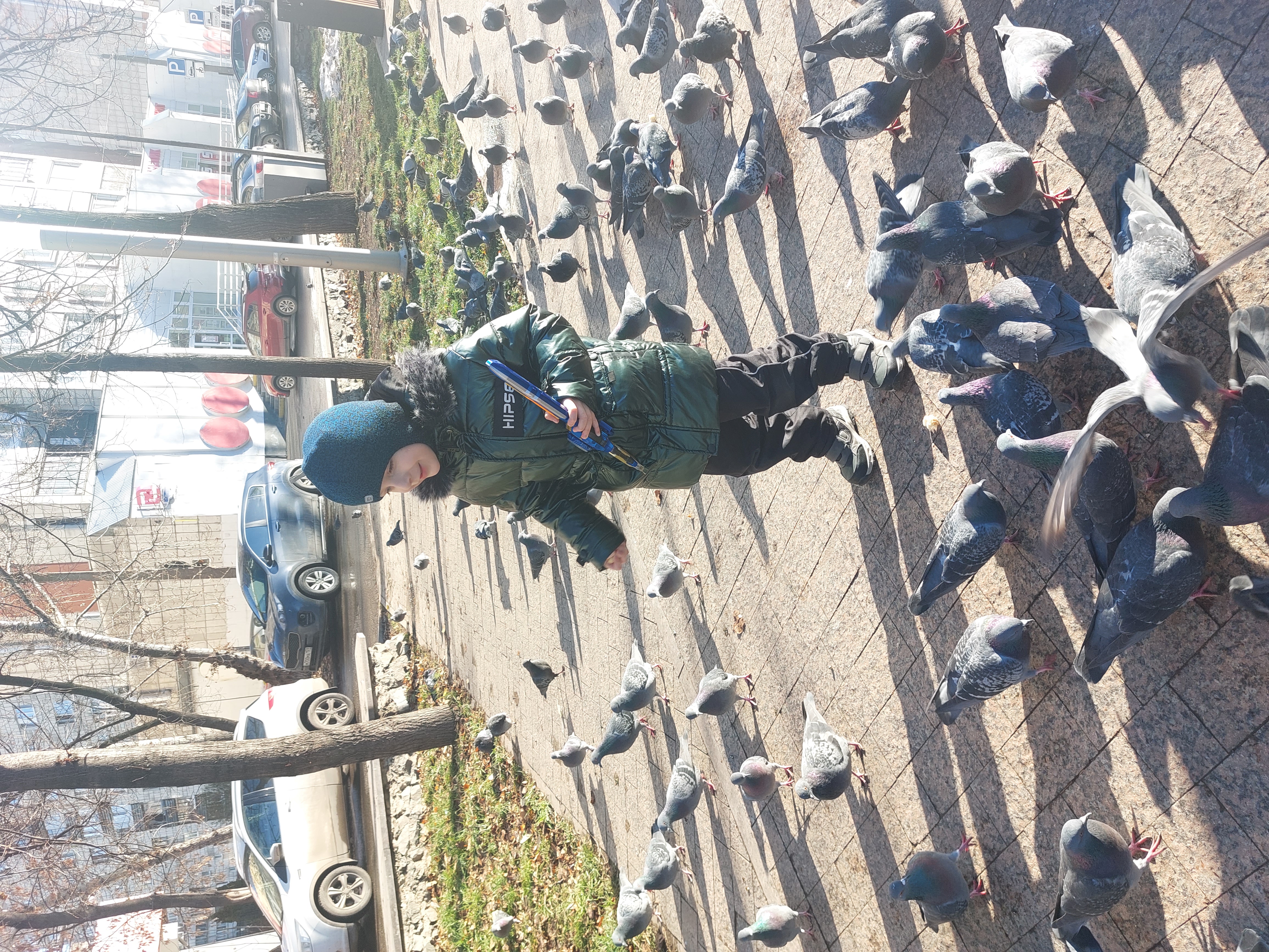 Alimentando a las palomas