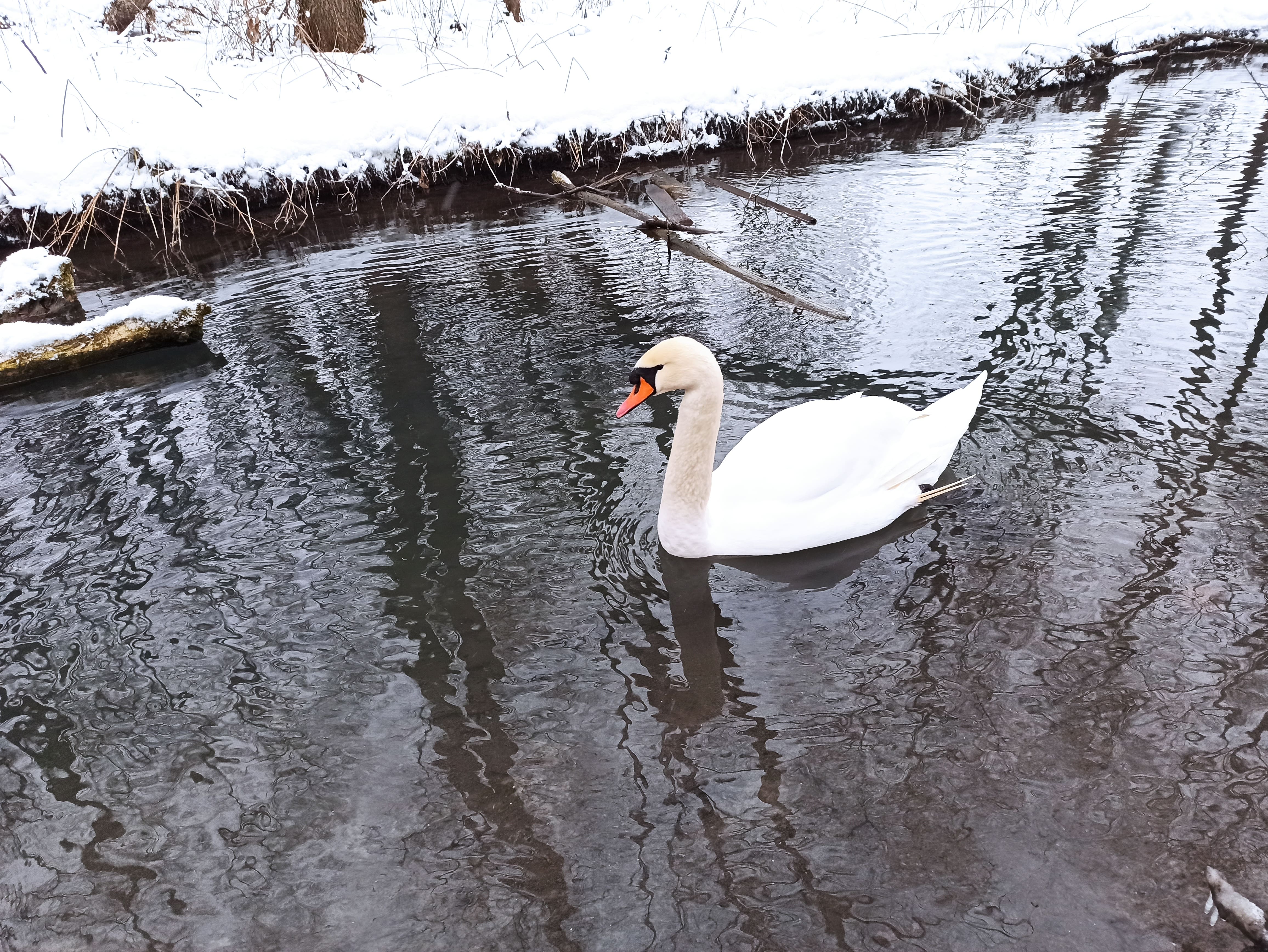 Cisne en el bosque de invierno