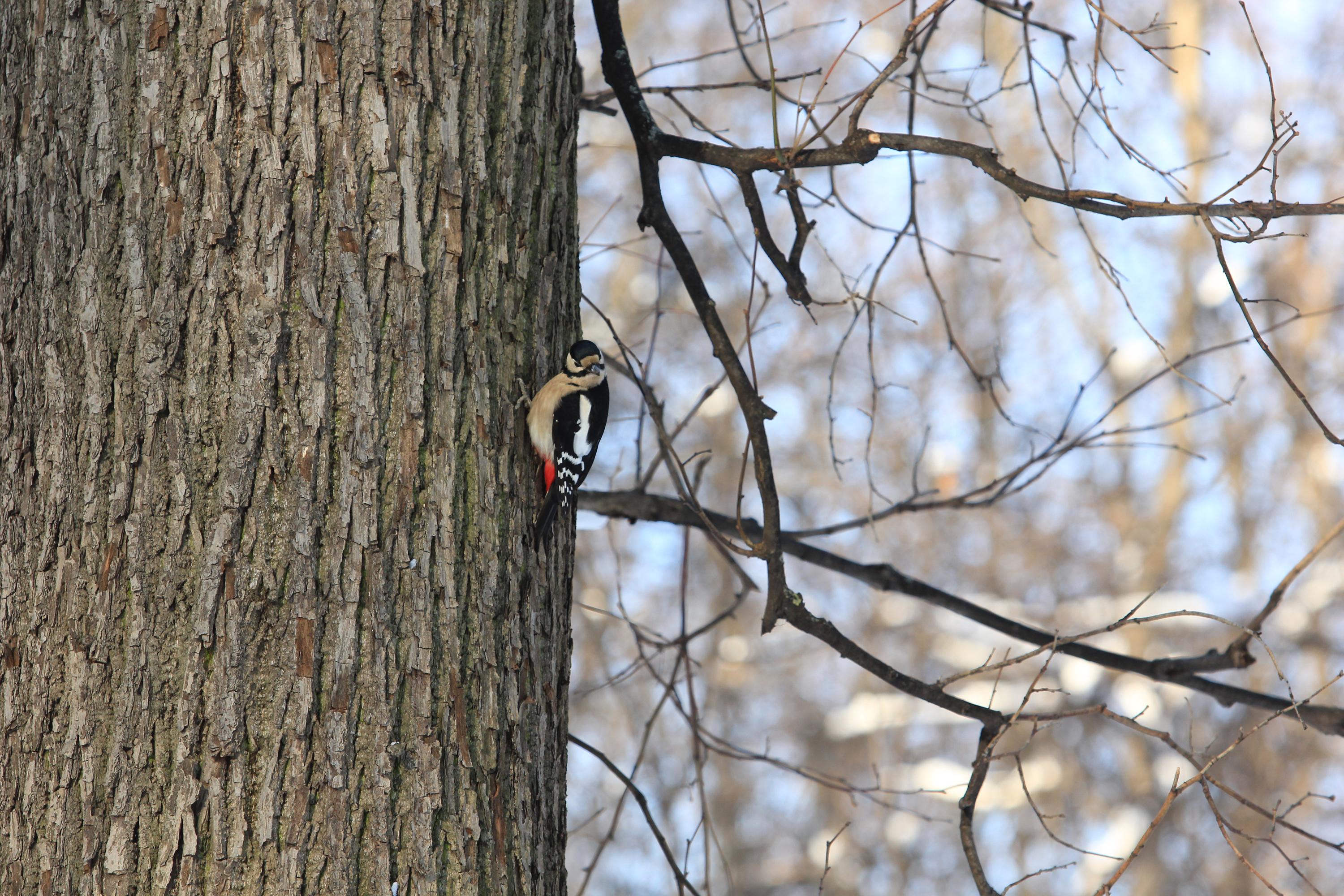 Pájaro carpintero busca comida