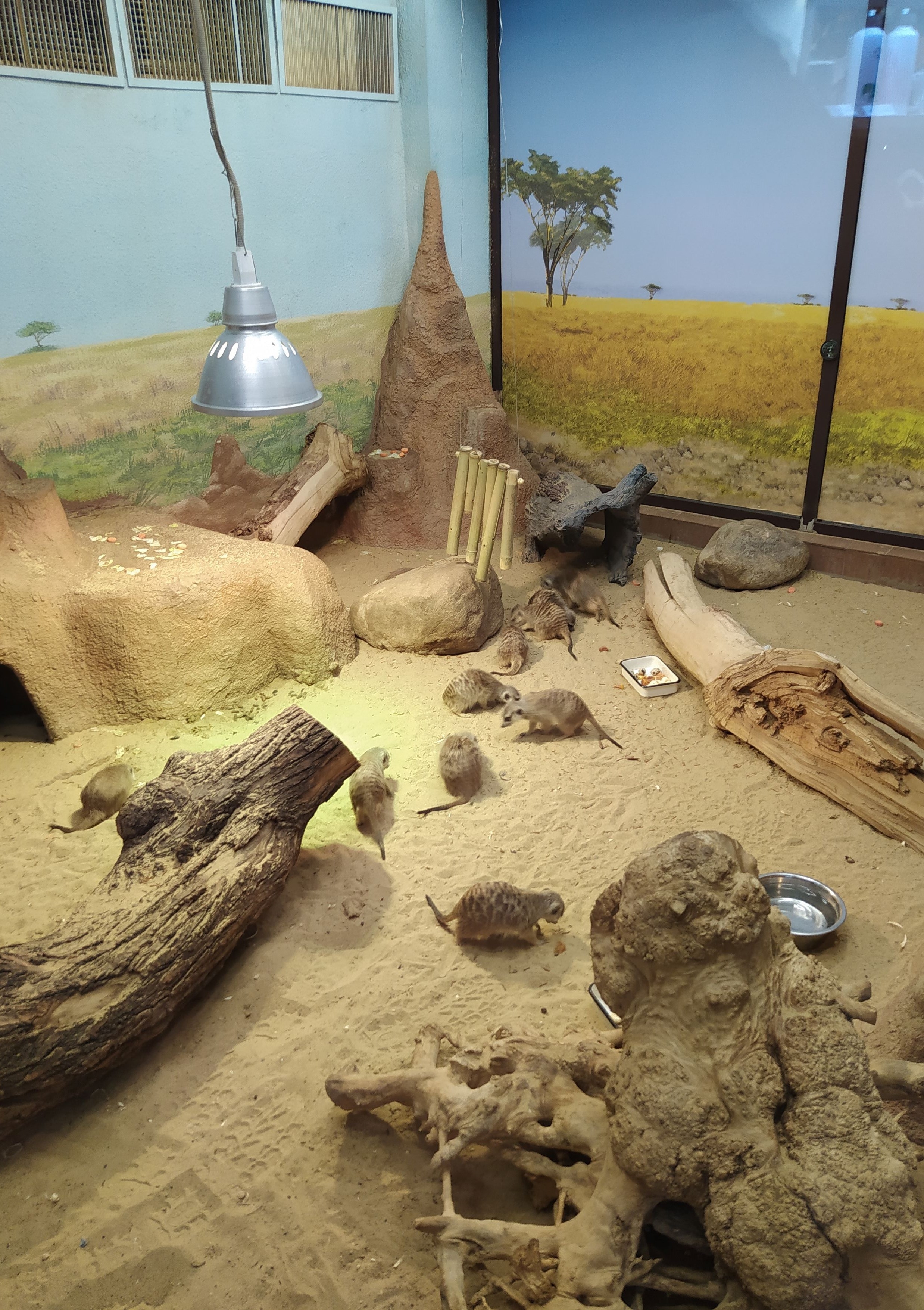 Una familia de suricatas. Bajo la protección del zoológico de Moscú.