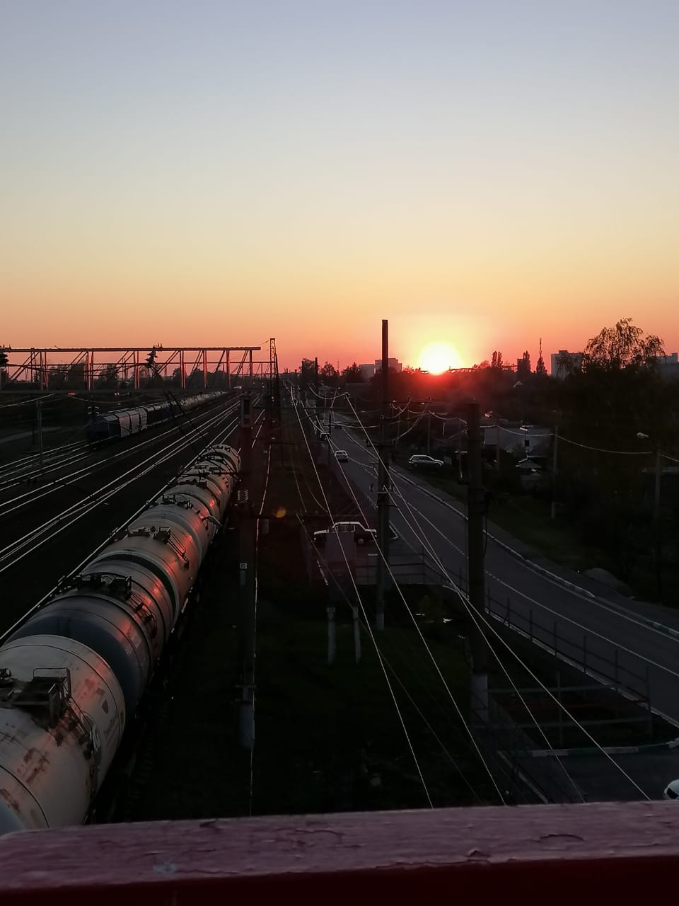 "Puesta de sol sobre los caminos: el encuentro de dos luminarias"