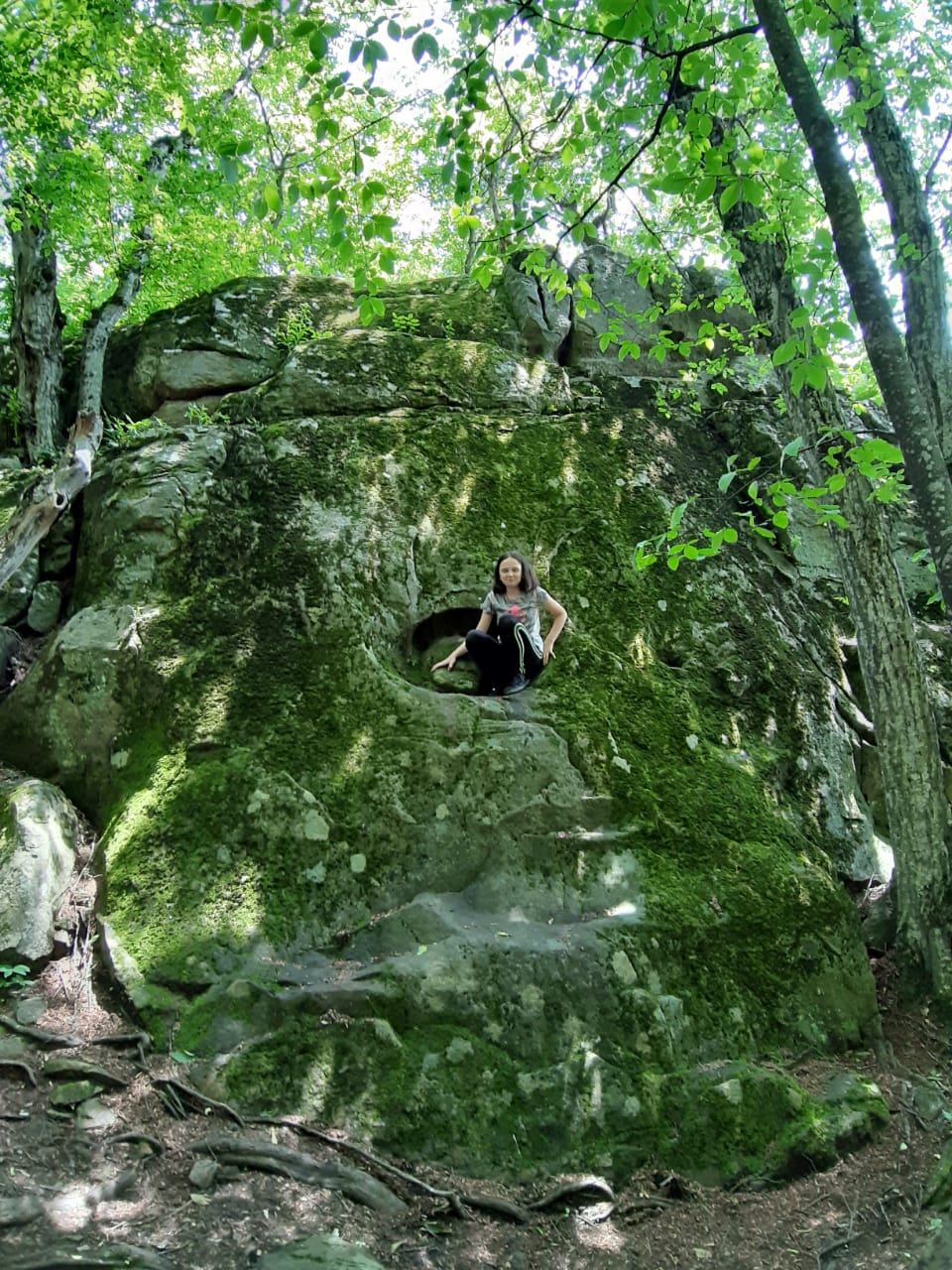 Una gran roca cubierta de musgo.