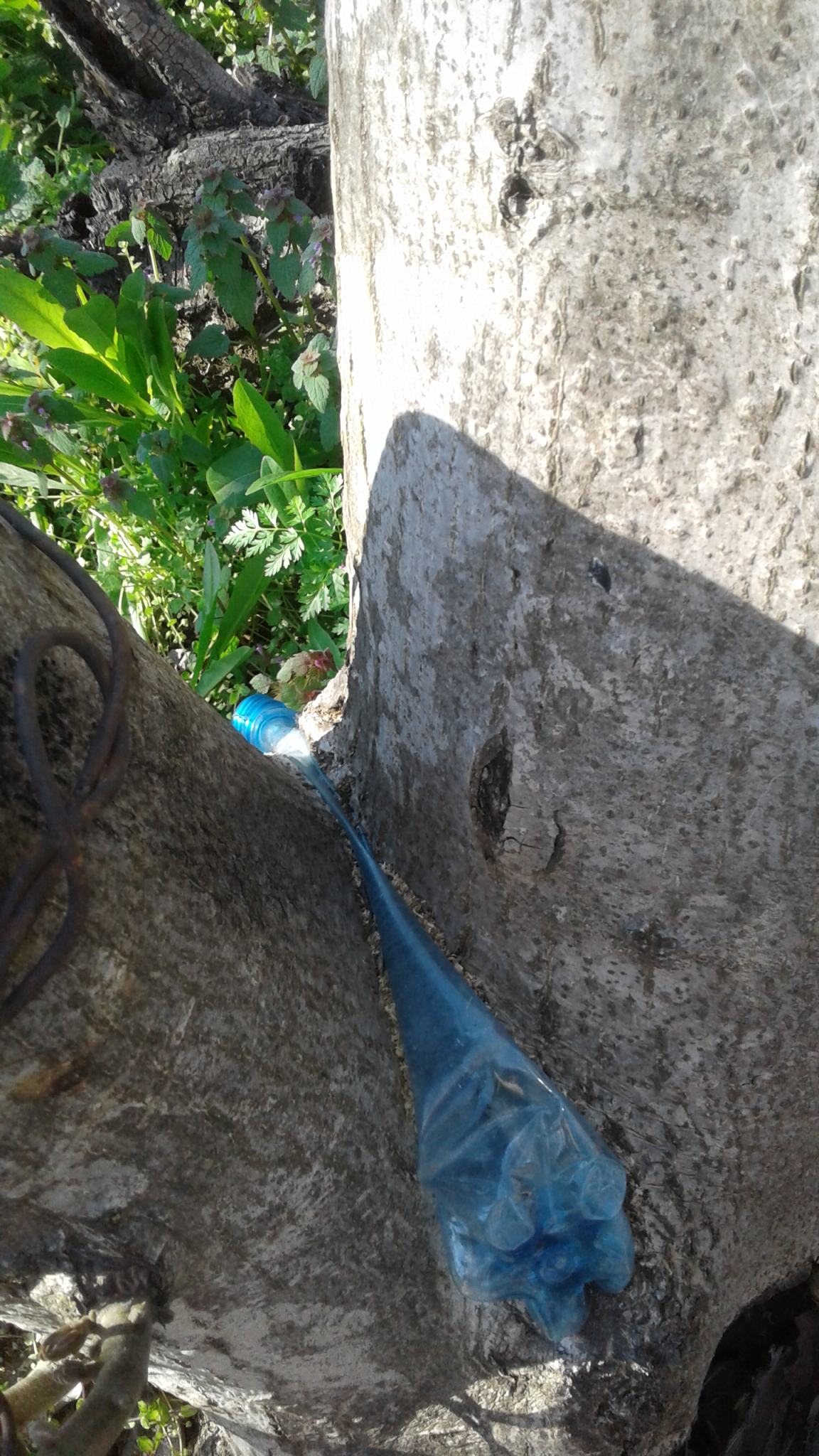 La fuerza de la naturaleza es grande: el árbol se tragó una botella de plástico