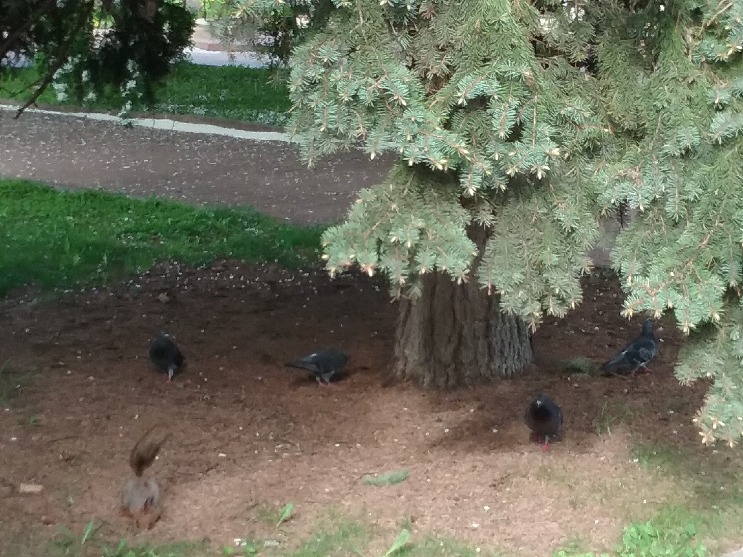 Amistad de ardillas y palomas, todo armonioso!