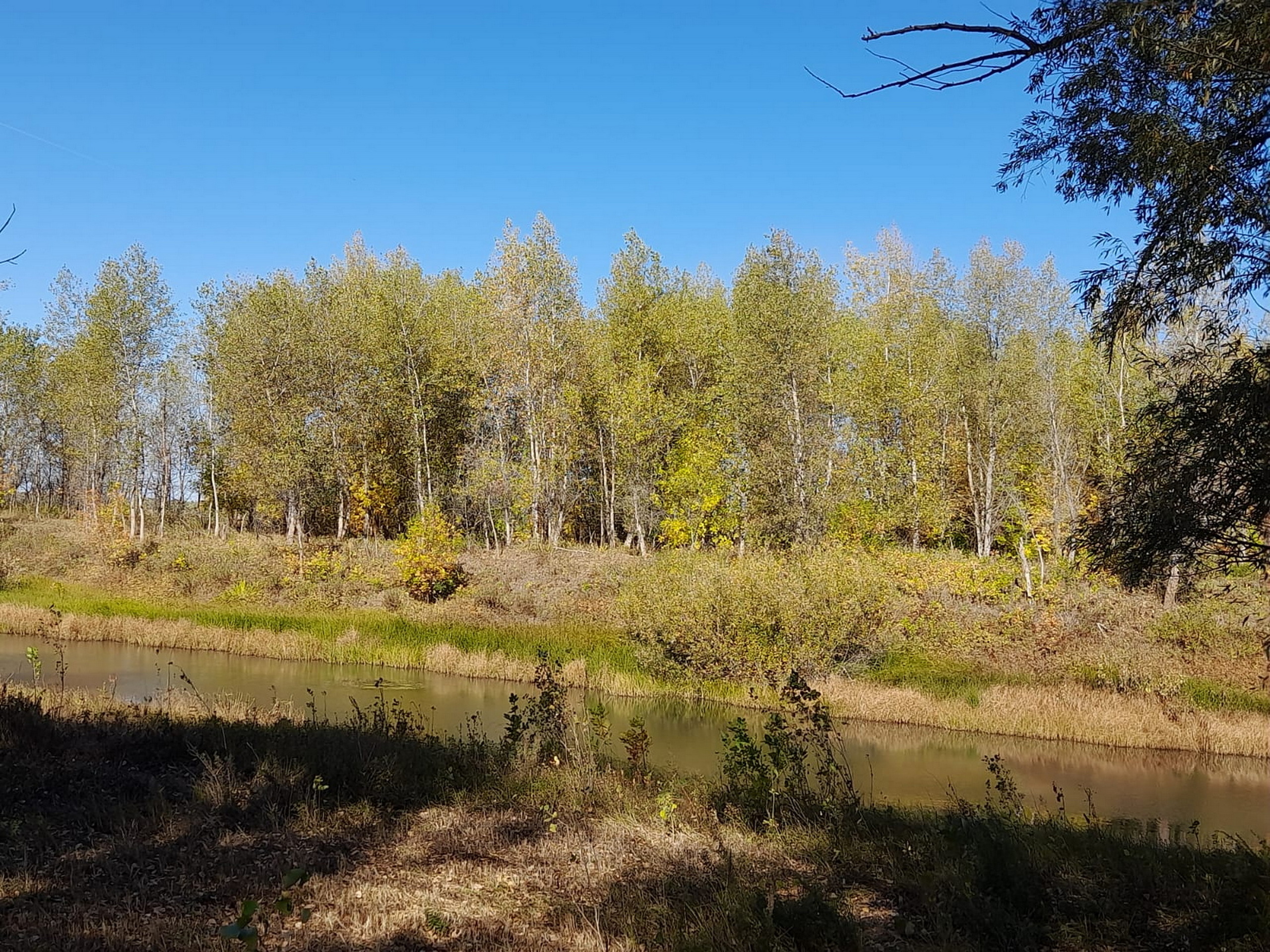 Los abedules en vestidos de verano amarillos se alinearon cerca del río.