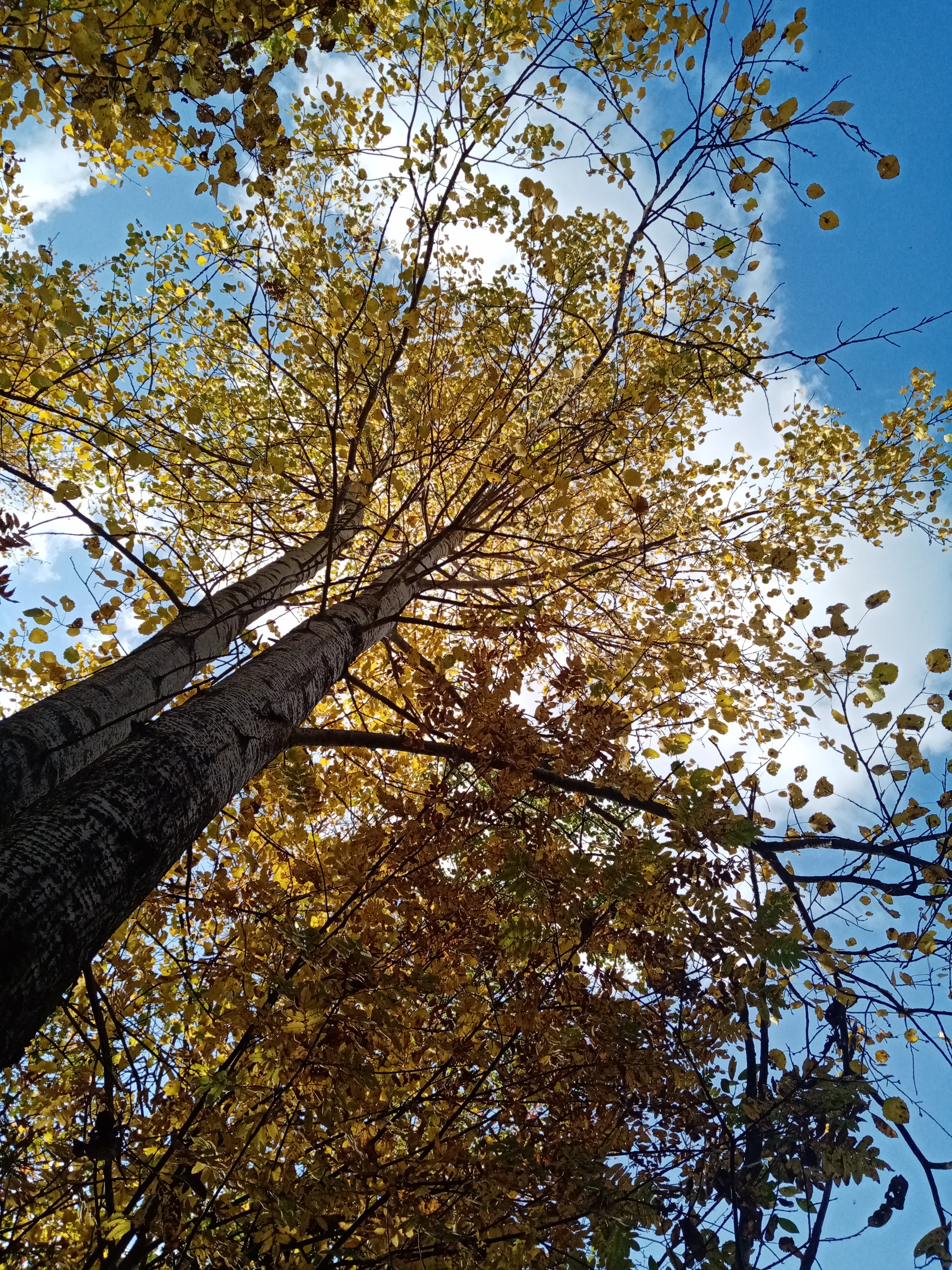 Hojas doradas de árbol alto