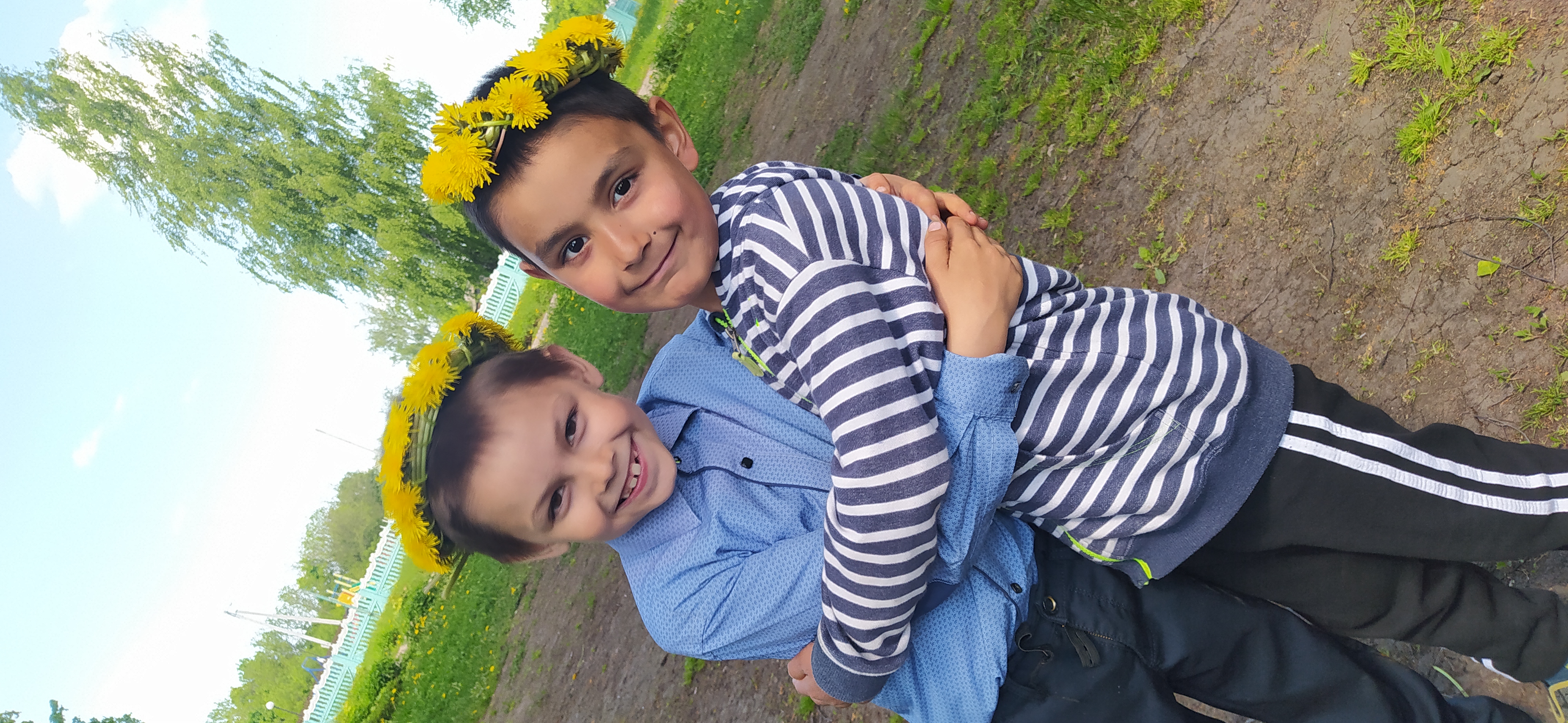 ¡Mi amigo y yo tejemos una corona de dientes de León!
