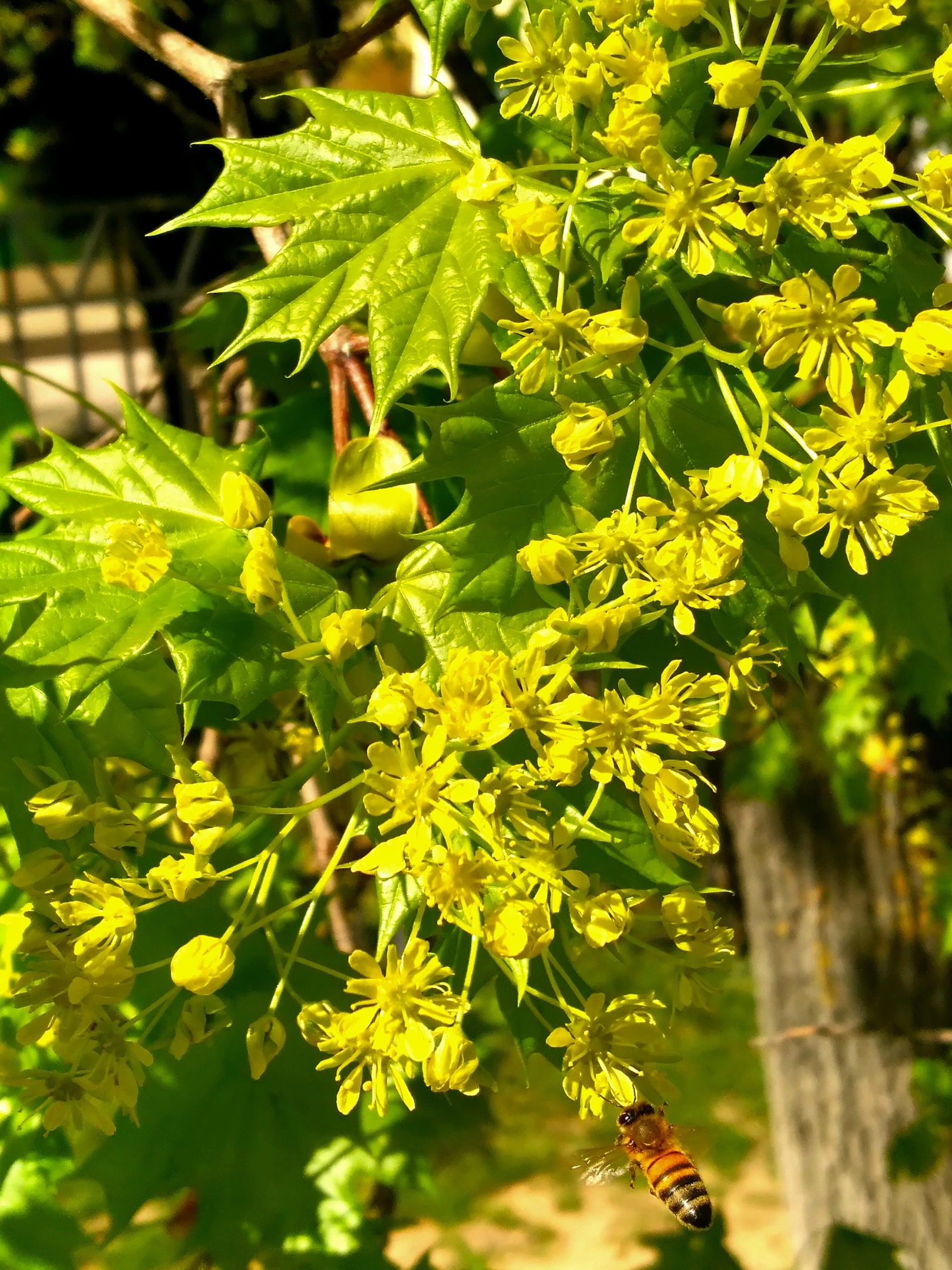 ¡La abeja trabajadora toma cuidadosamente el polen! ¡Habrá miel!