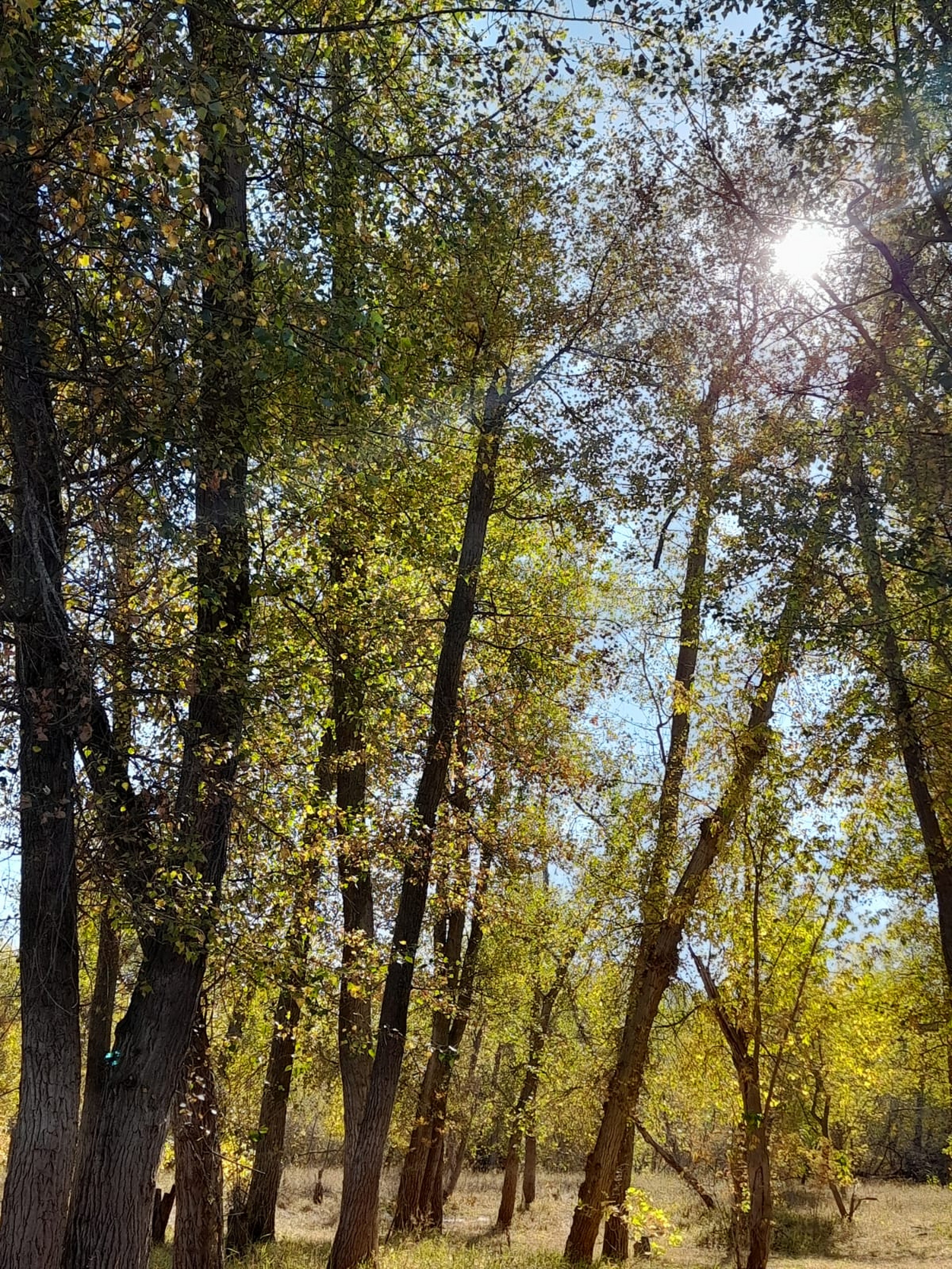 Sol de otoño a la sombra de los árboles.
