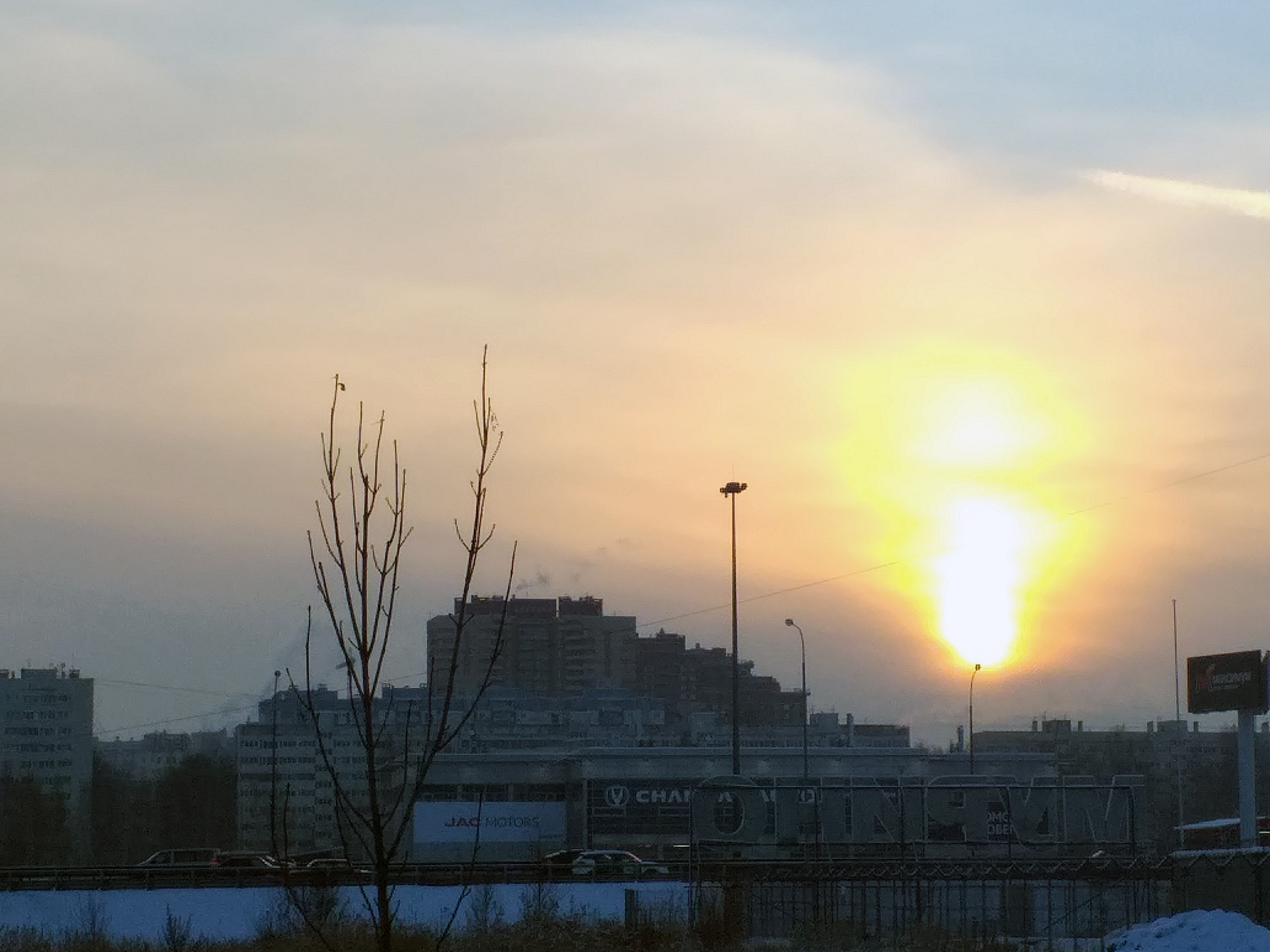 Sol de invierno sobre la ciudad fría.