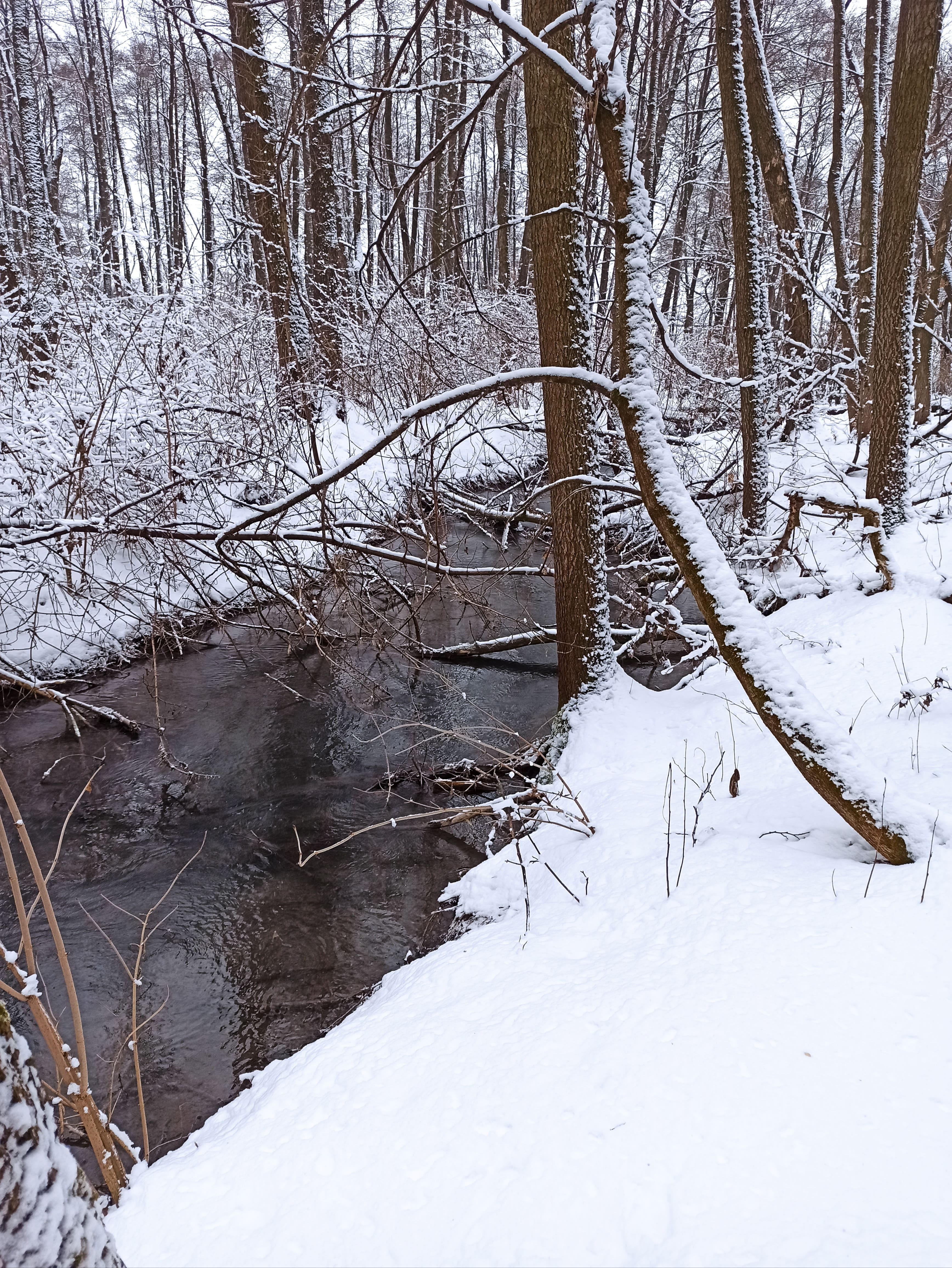 Balbuceo de un arroyo en el bosque de invierno