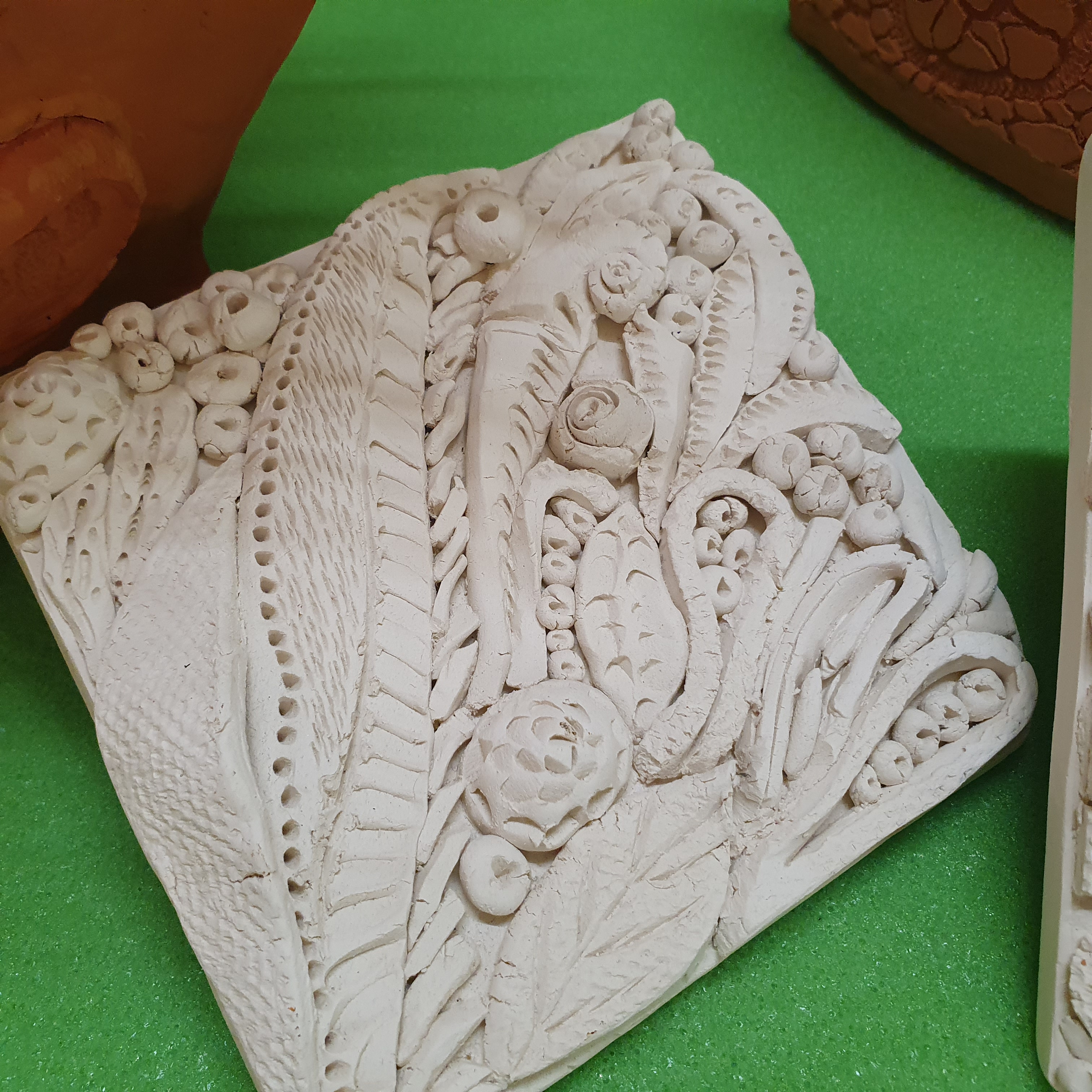 Azulejos ornamentales de flores. Arcilla.