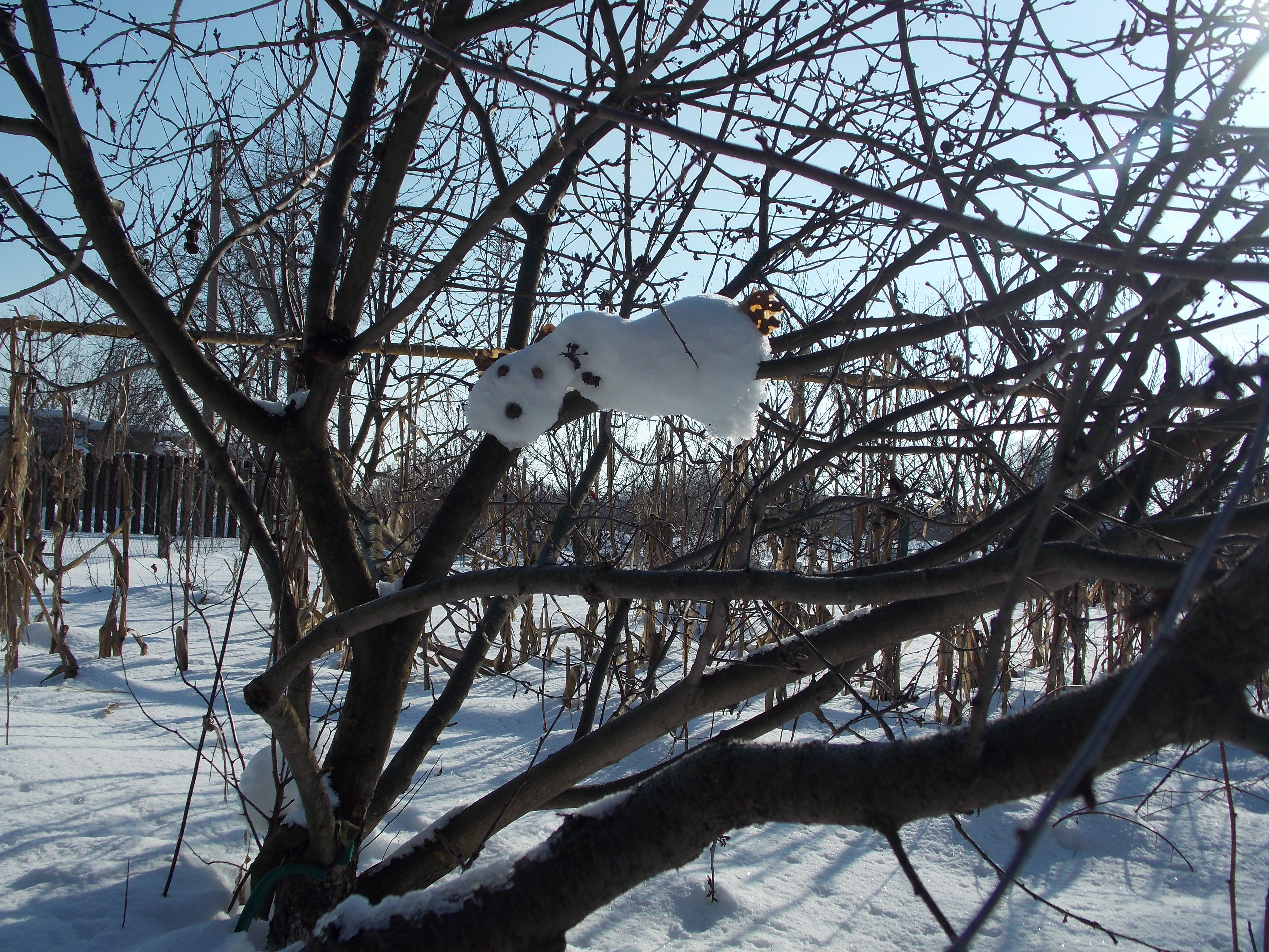 Oso de peluche en un árbol.
