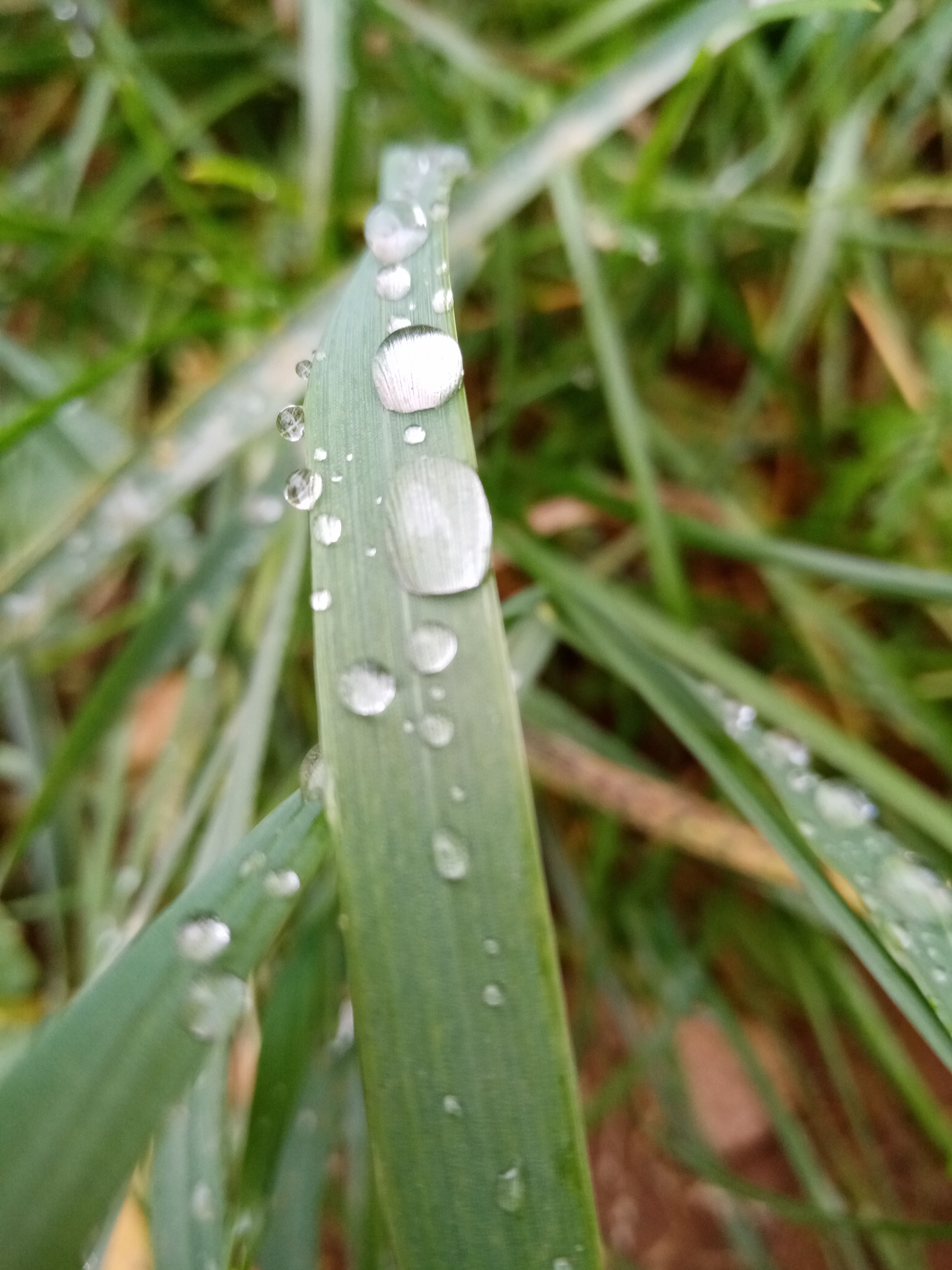 Hoja larga con gotas grandes