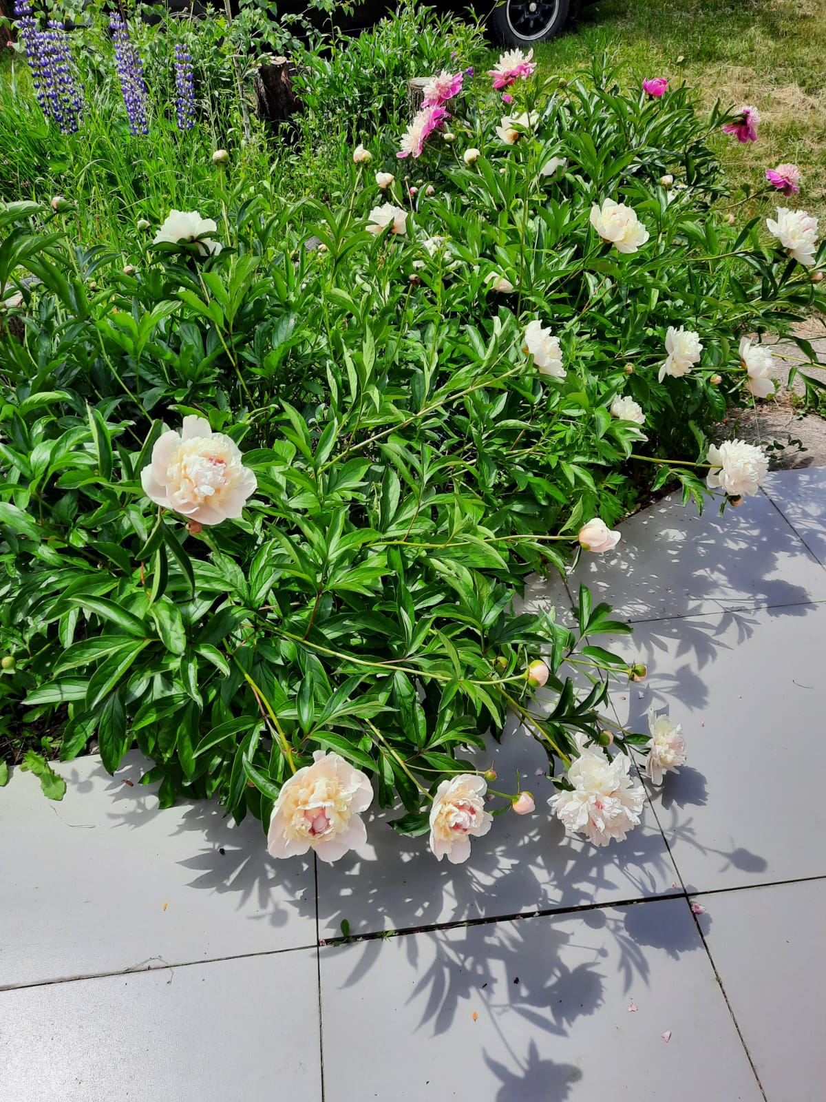 "La exuberante floración de peonías en la casa de campo del abuelo"