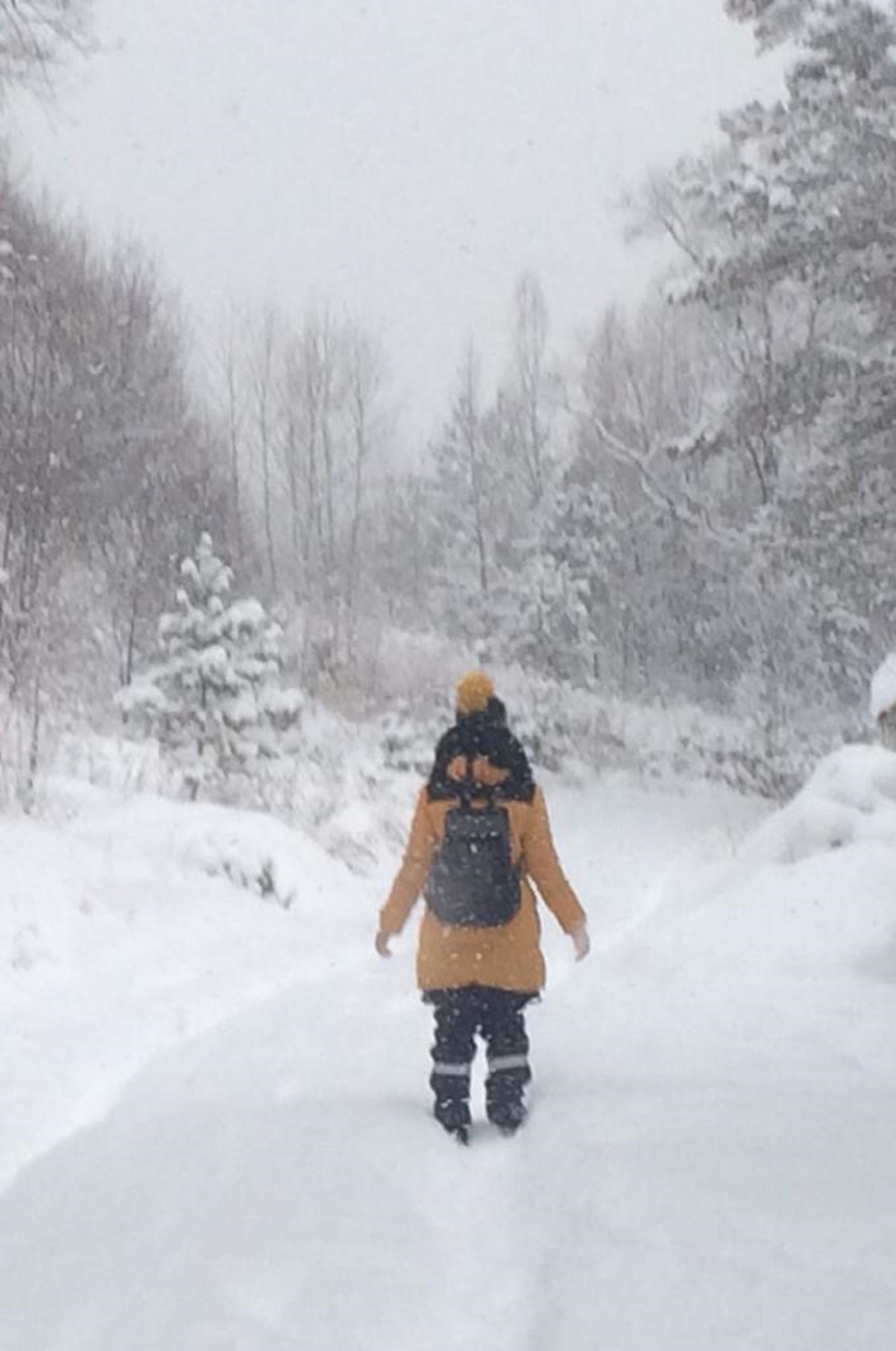 Aire fresco, nieve limpia. Con buen humor voy a la escuela.