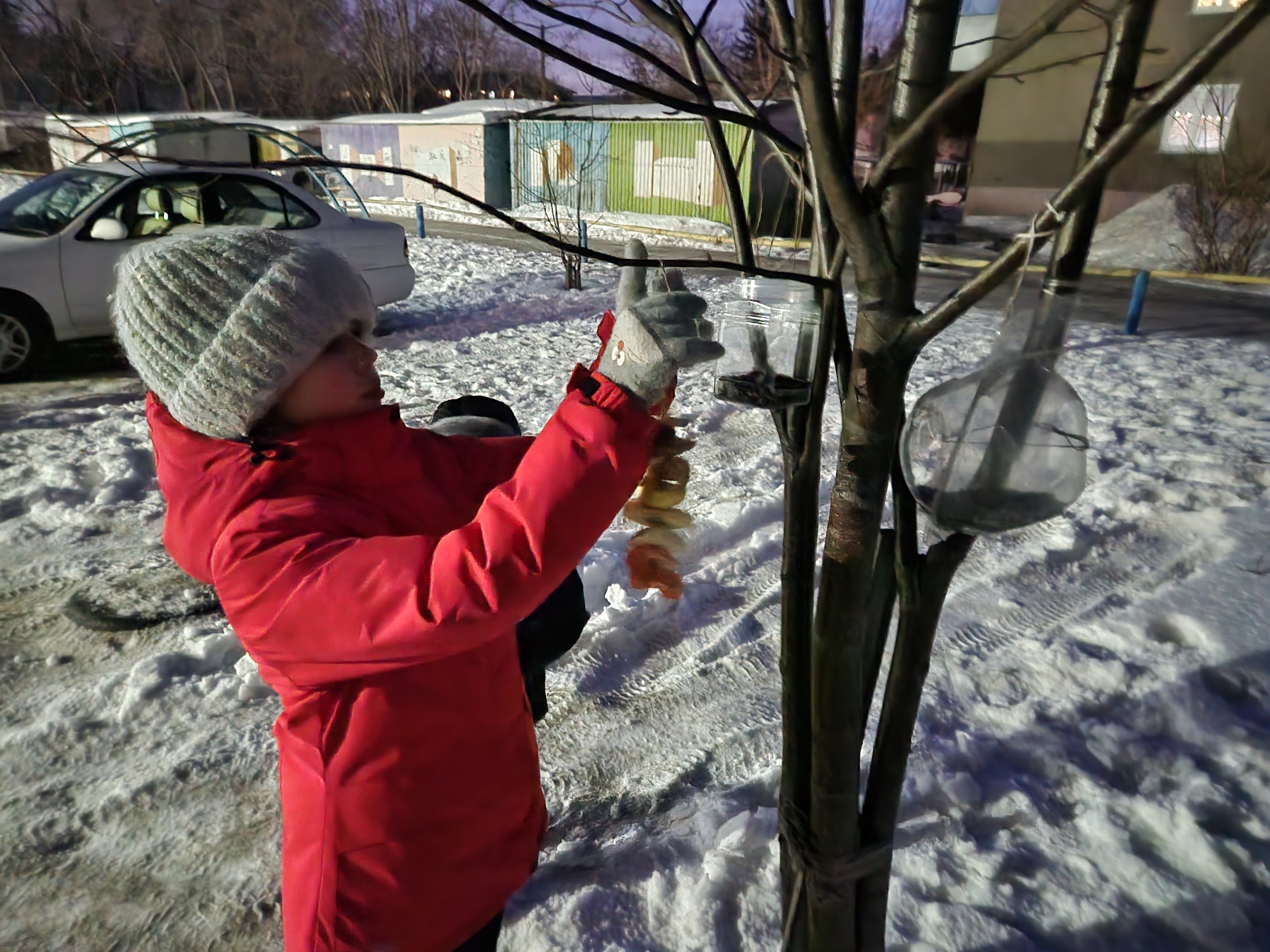 Hacemos comederos comestibles para pájaros.