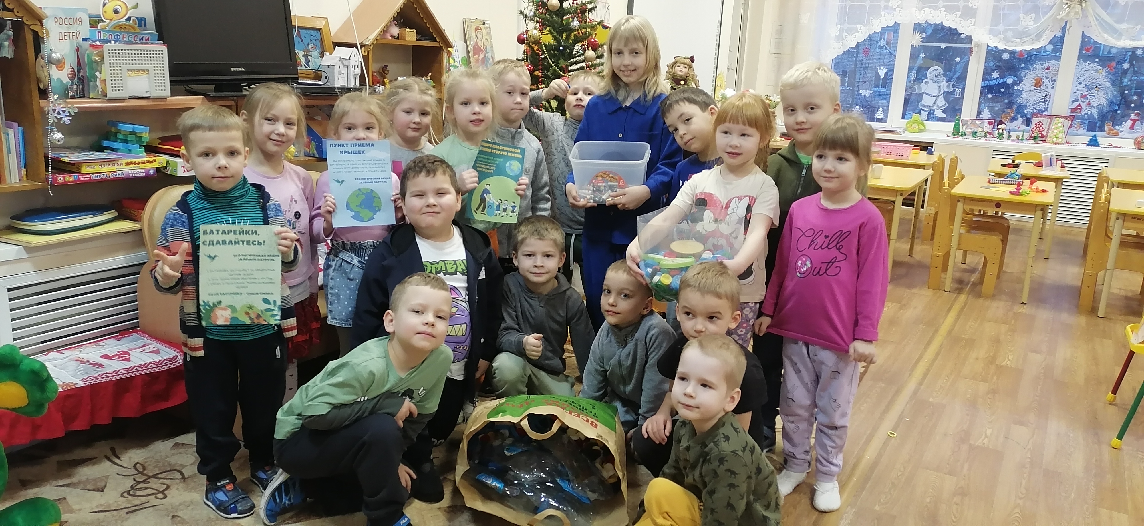 Organizó una acción para recoger baterías, tapas de plástico y botellas en el Jardín de infantes.