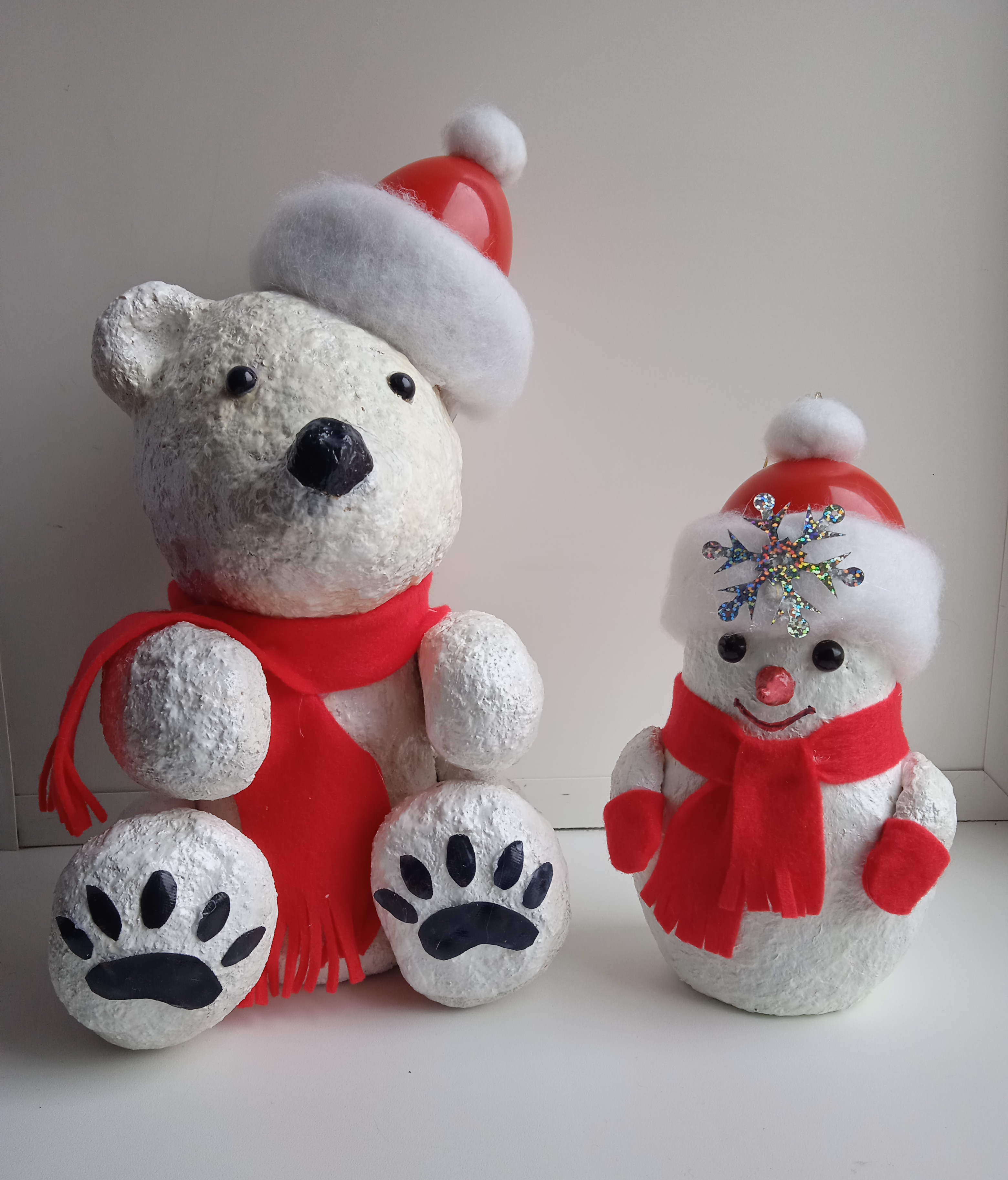 Juguetes de Navidad de botellas de plástico y papel maché de aserrín