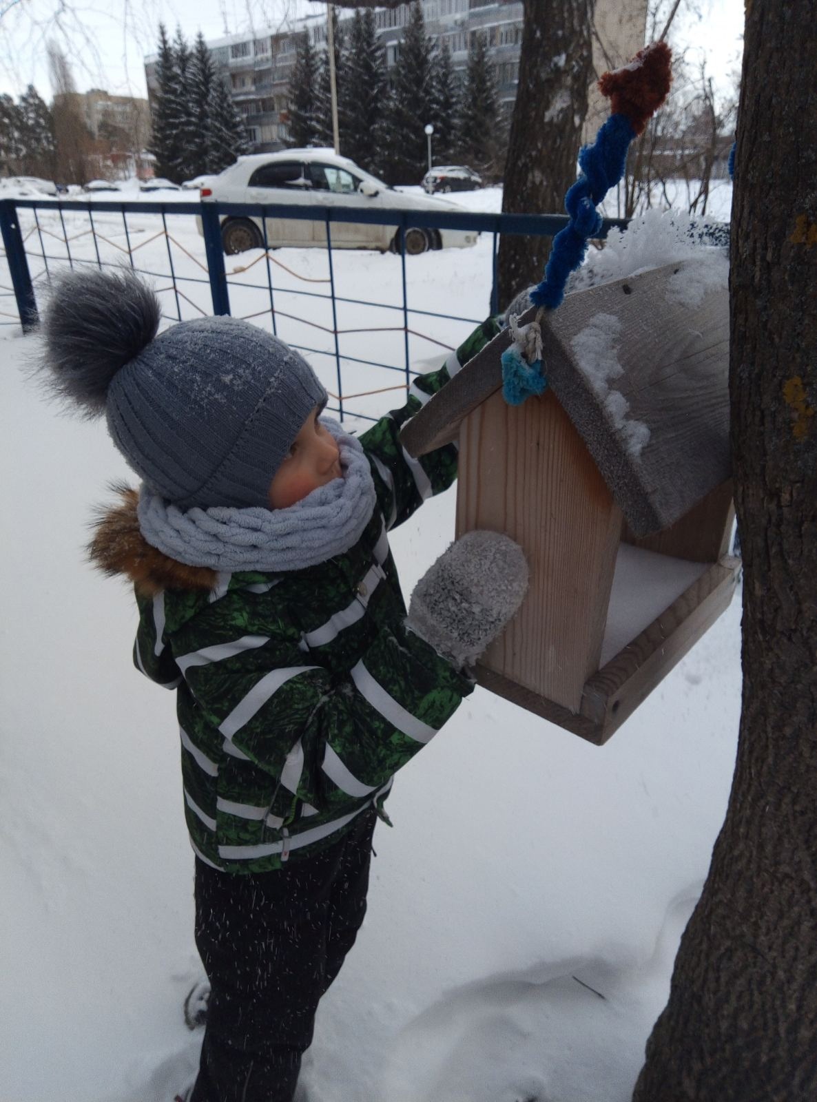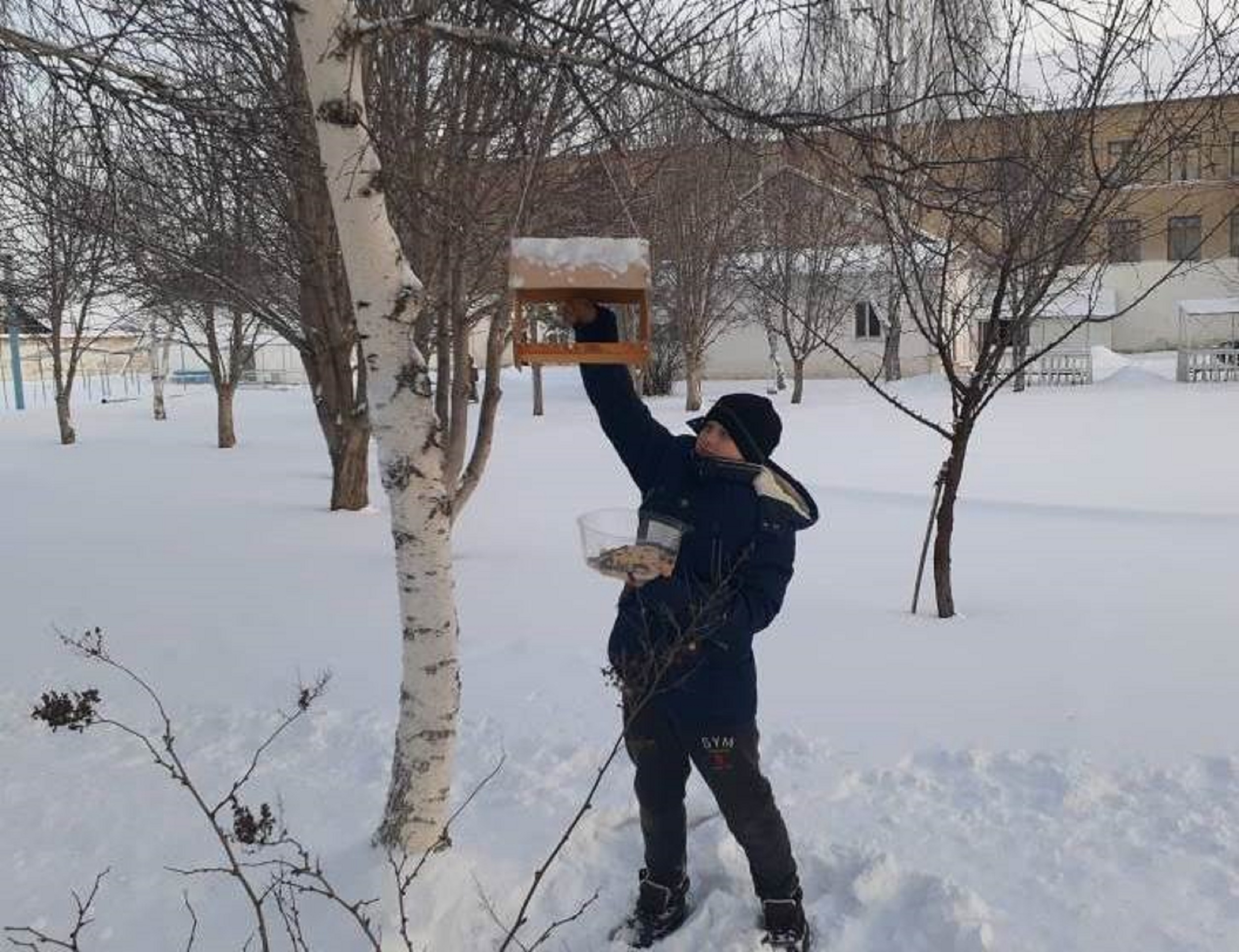 No me olvido de las aves en invierno, ¡la comida se vierte en el comedero!