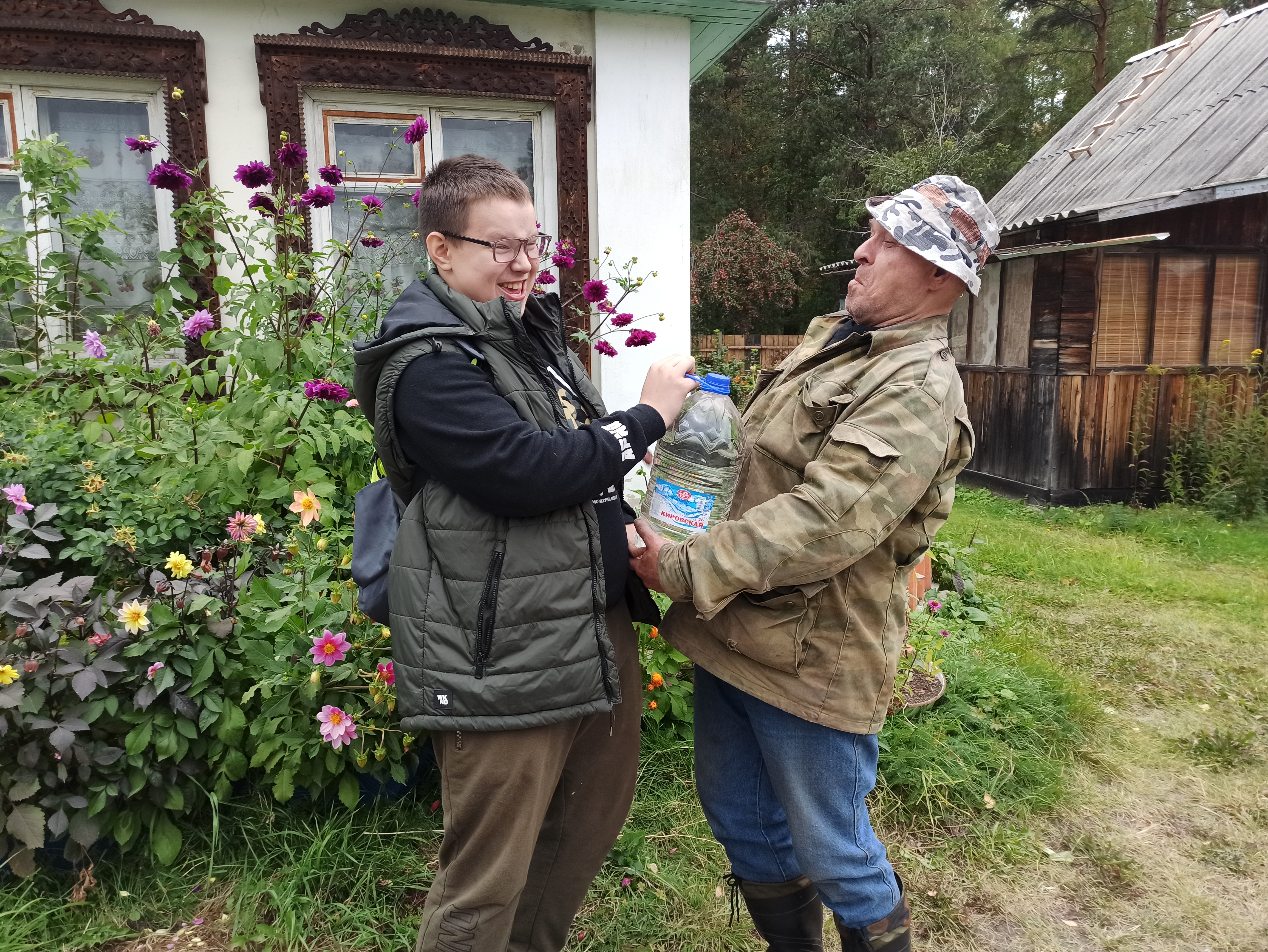 Entrega de agua de manantial a personas mayores