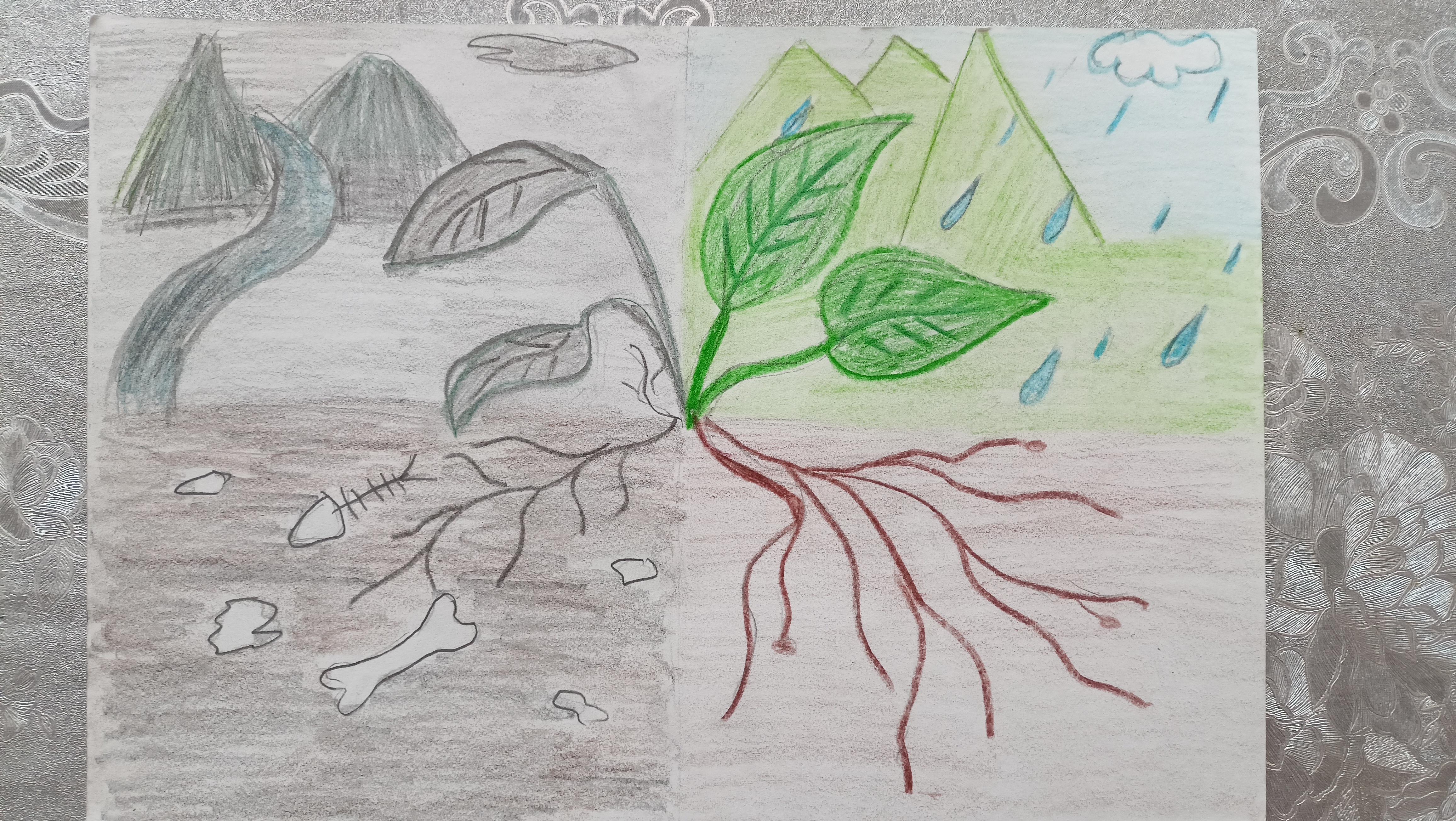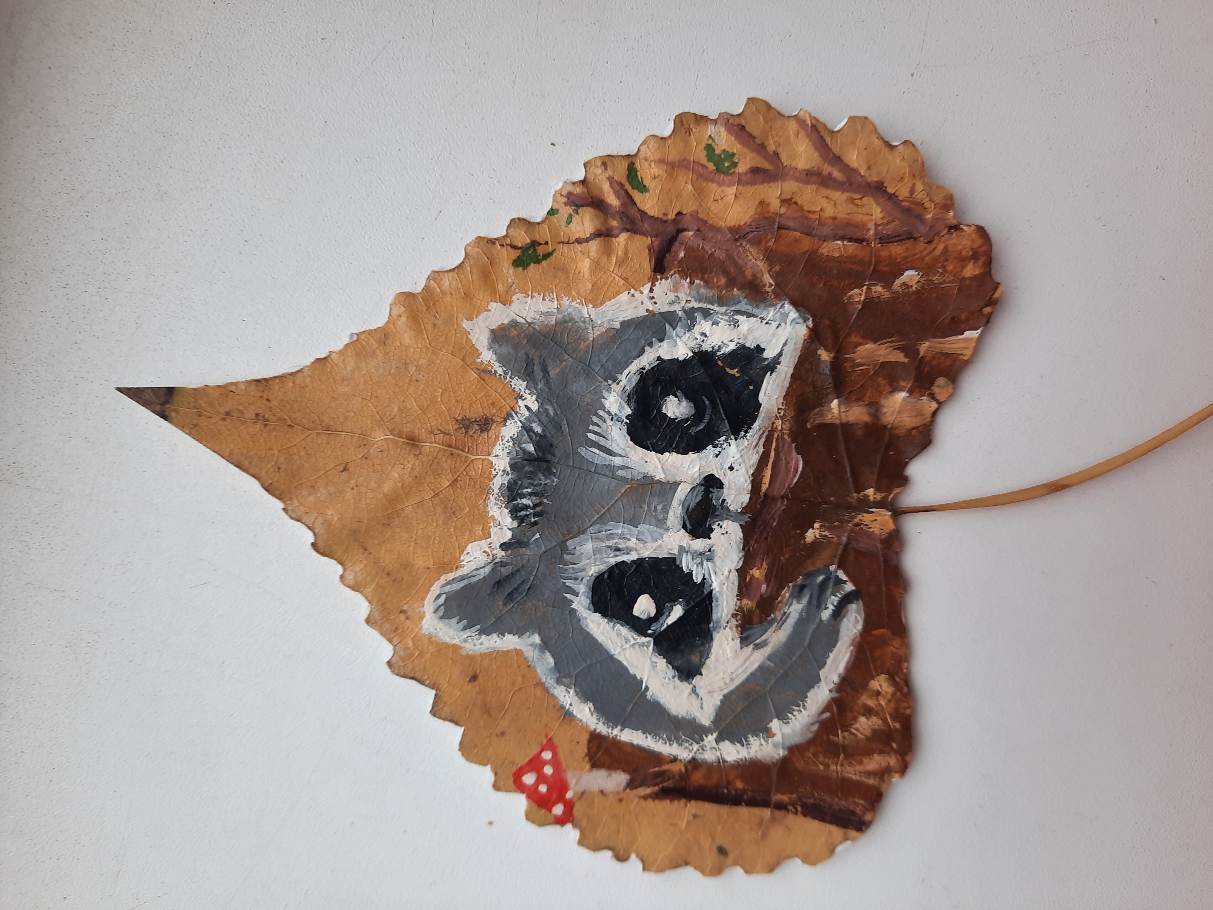 Dibujo en una hoja caída. Con amor a la naturaleza