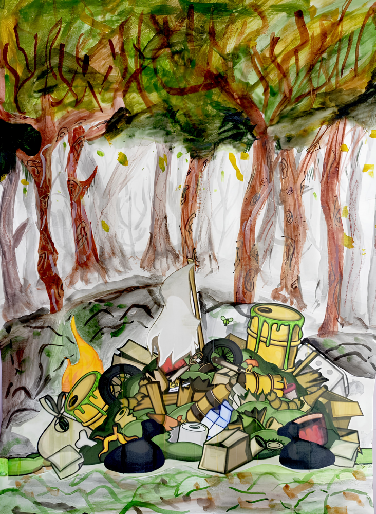 Basura en el bosque de invierno