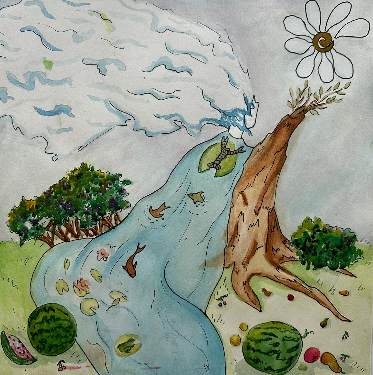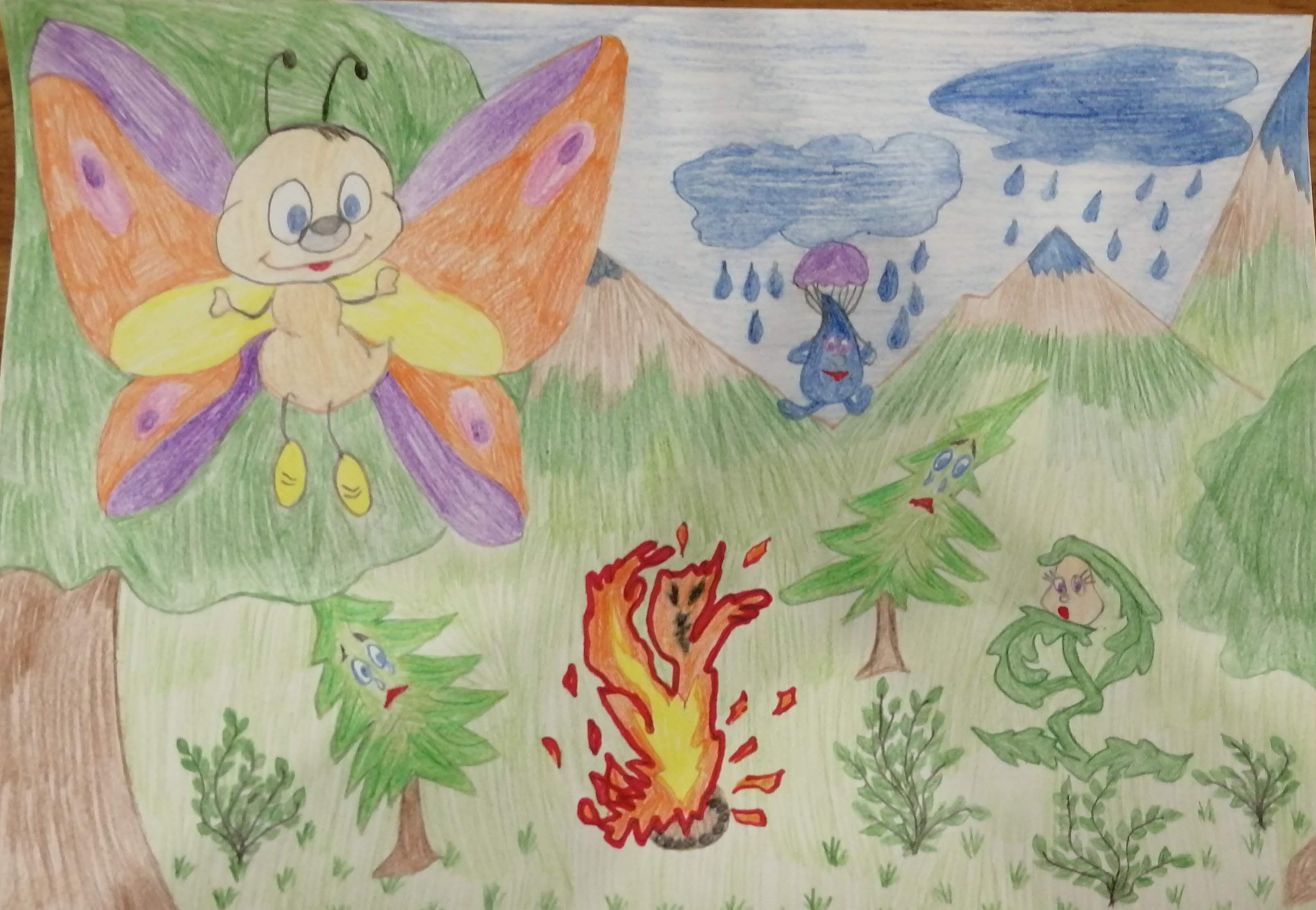 Рисунок к экологической сказке - Капелька и мотылек