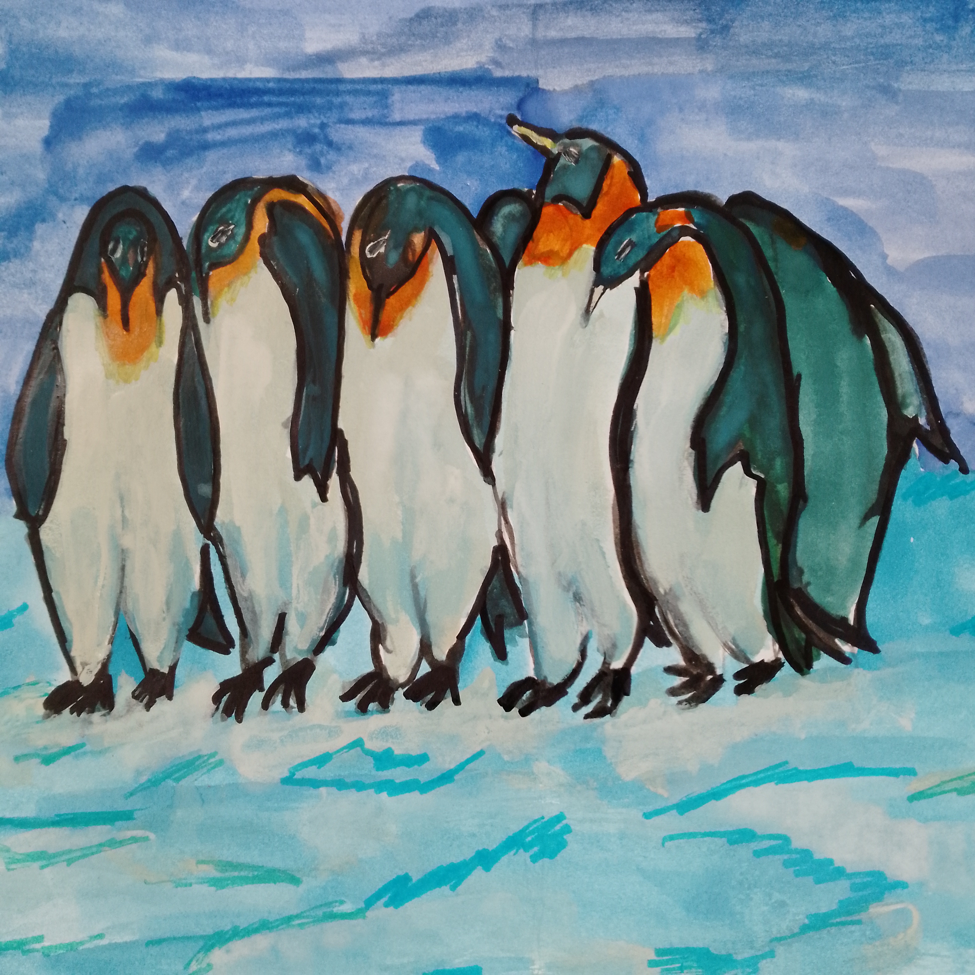 Группа пингвинов', защищающаяся от ветра