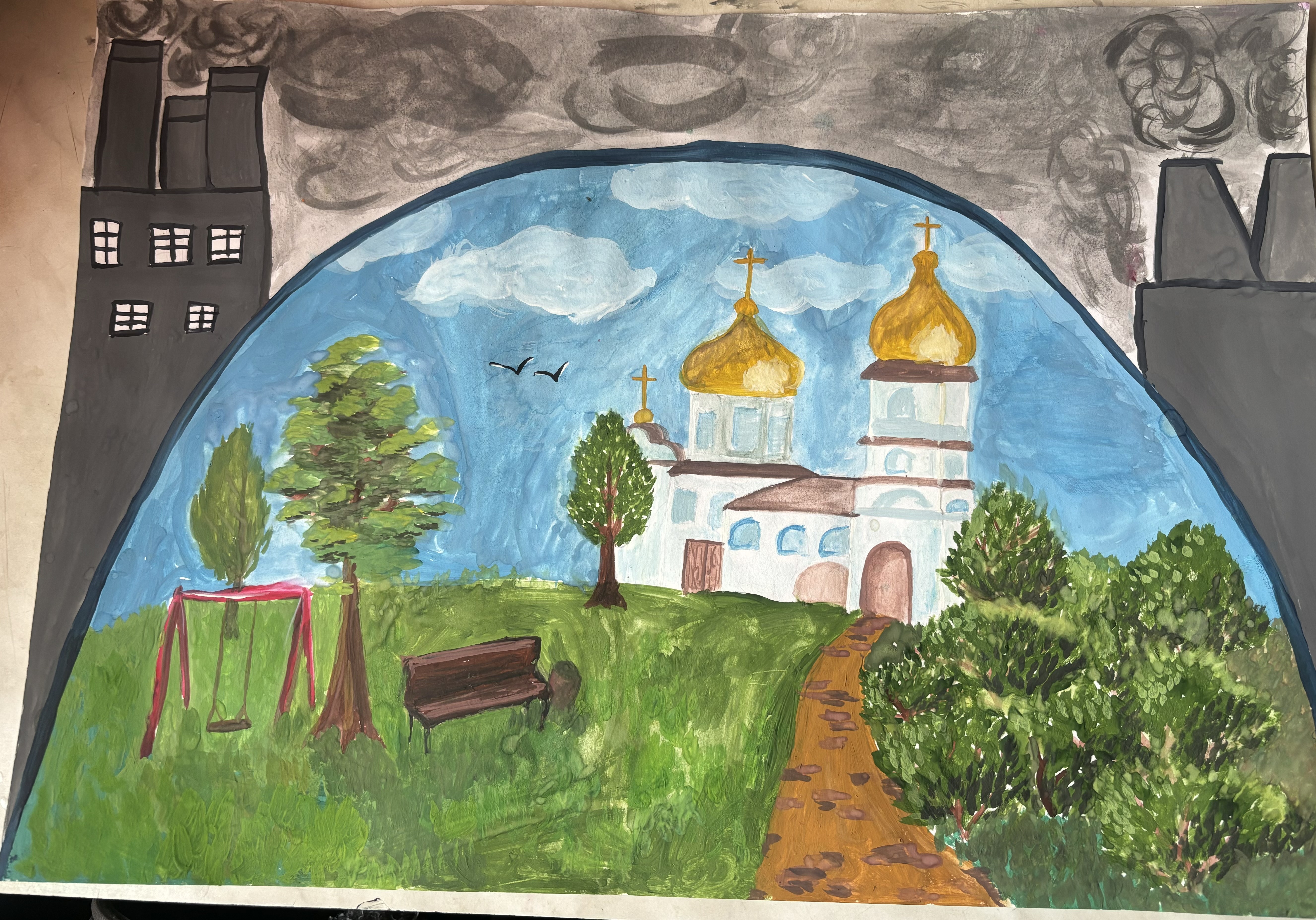 Пейзаж, выполненный на переработанной мною бумаге