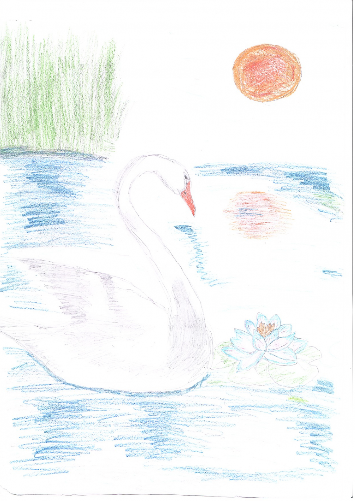 Лебедь на пруду