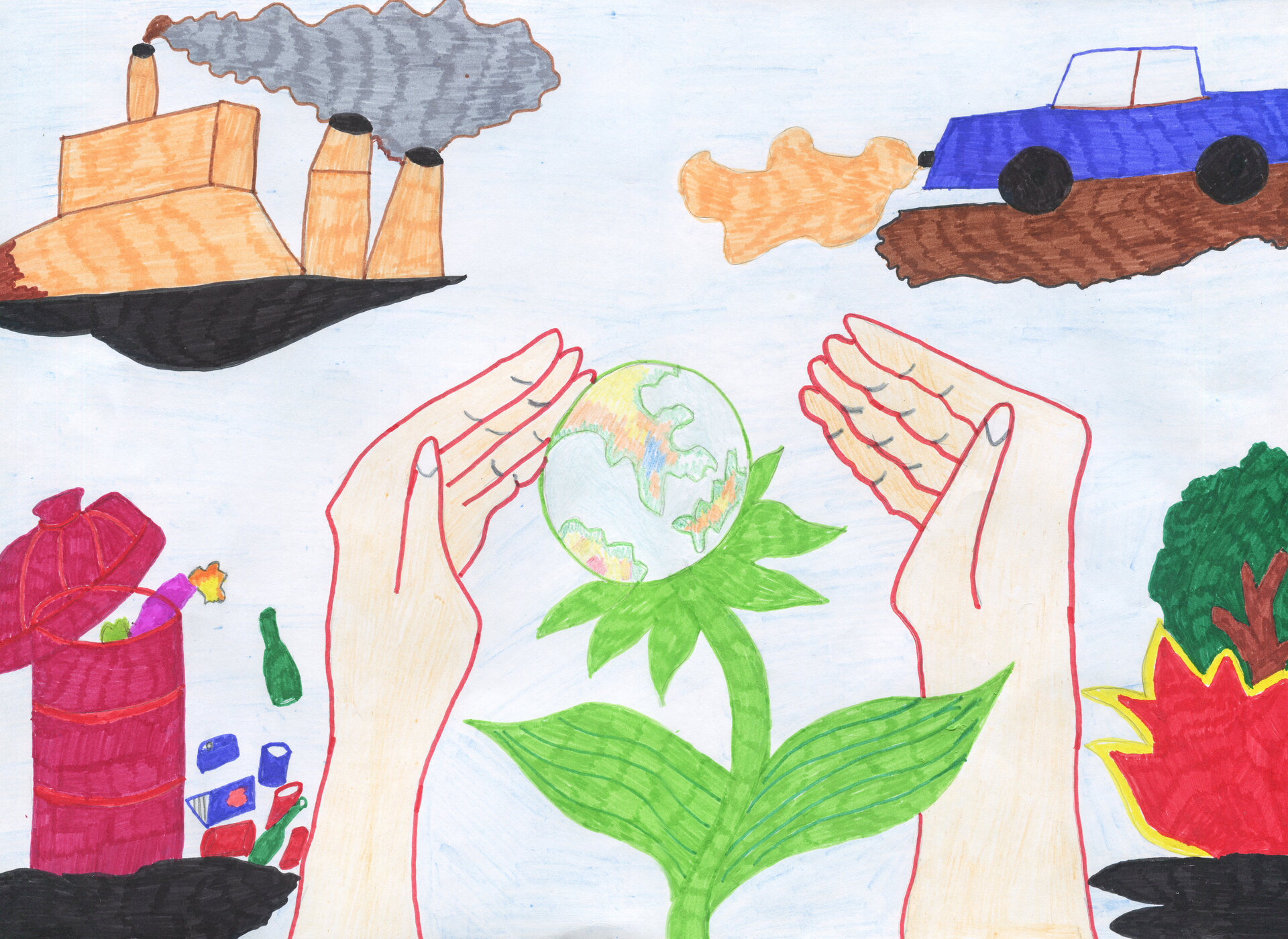 Здоровая и загрязненная планета Земля